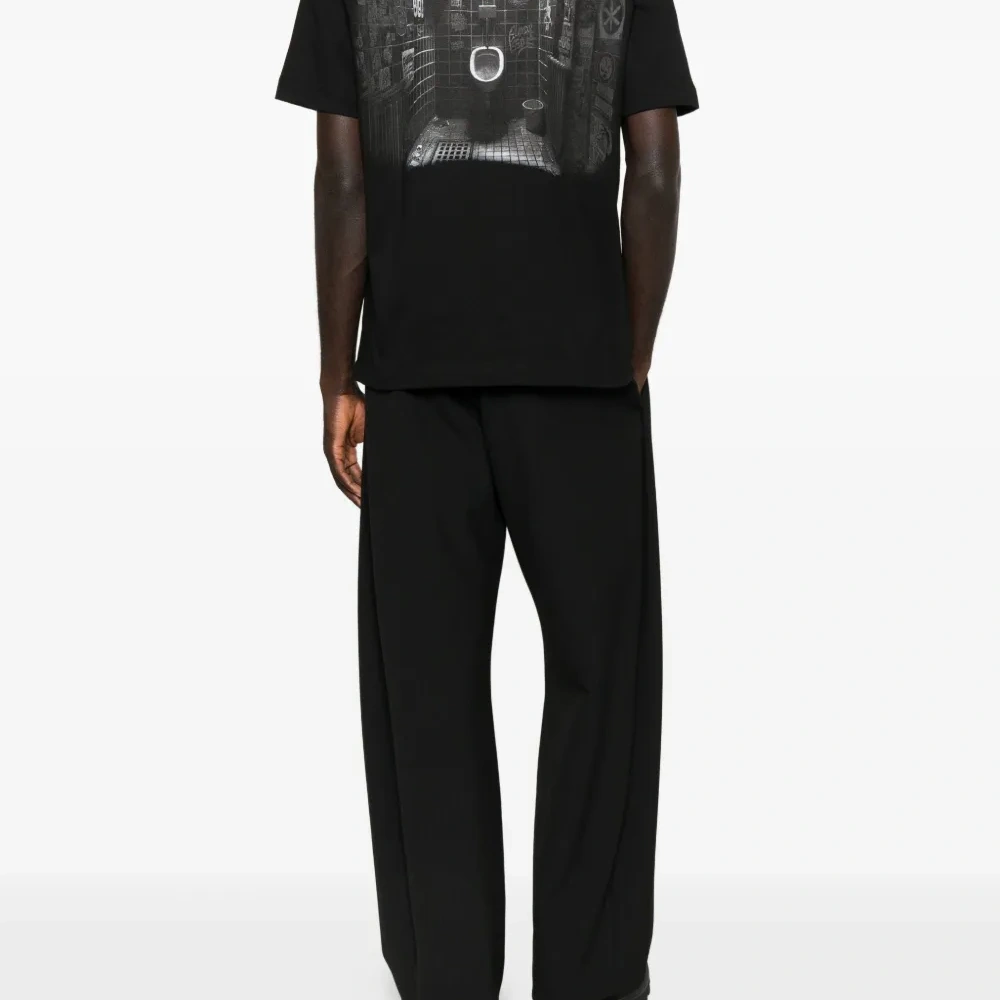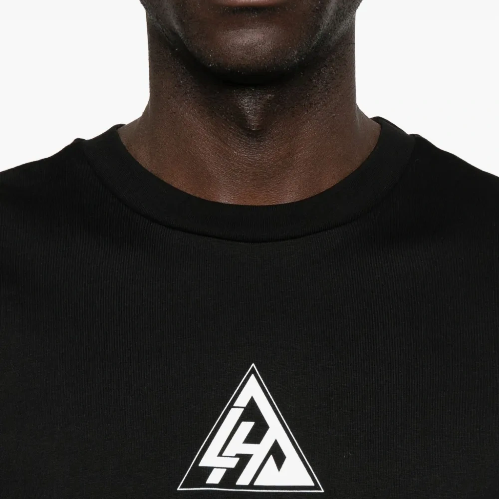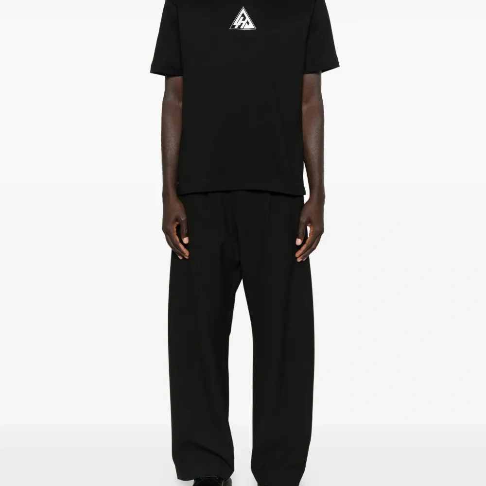 чёрный принт с логотипом круглый вырез короткие рукава прямой низ