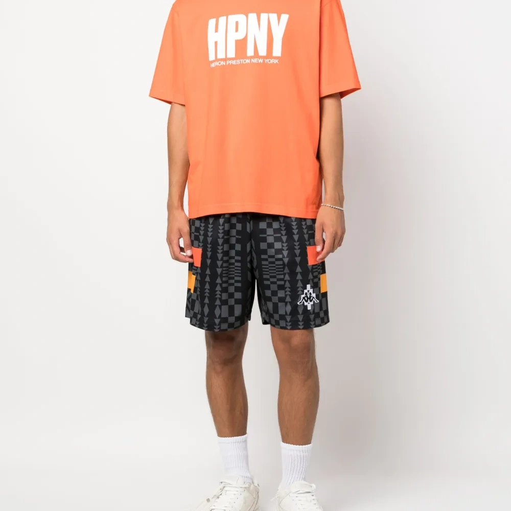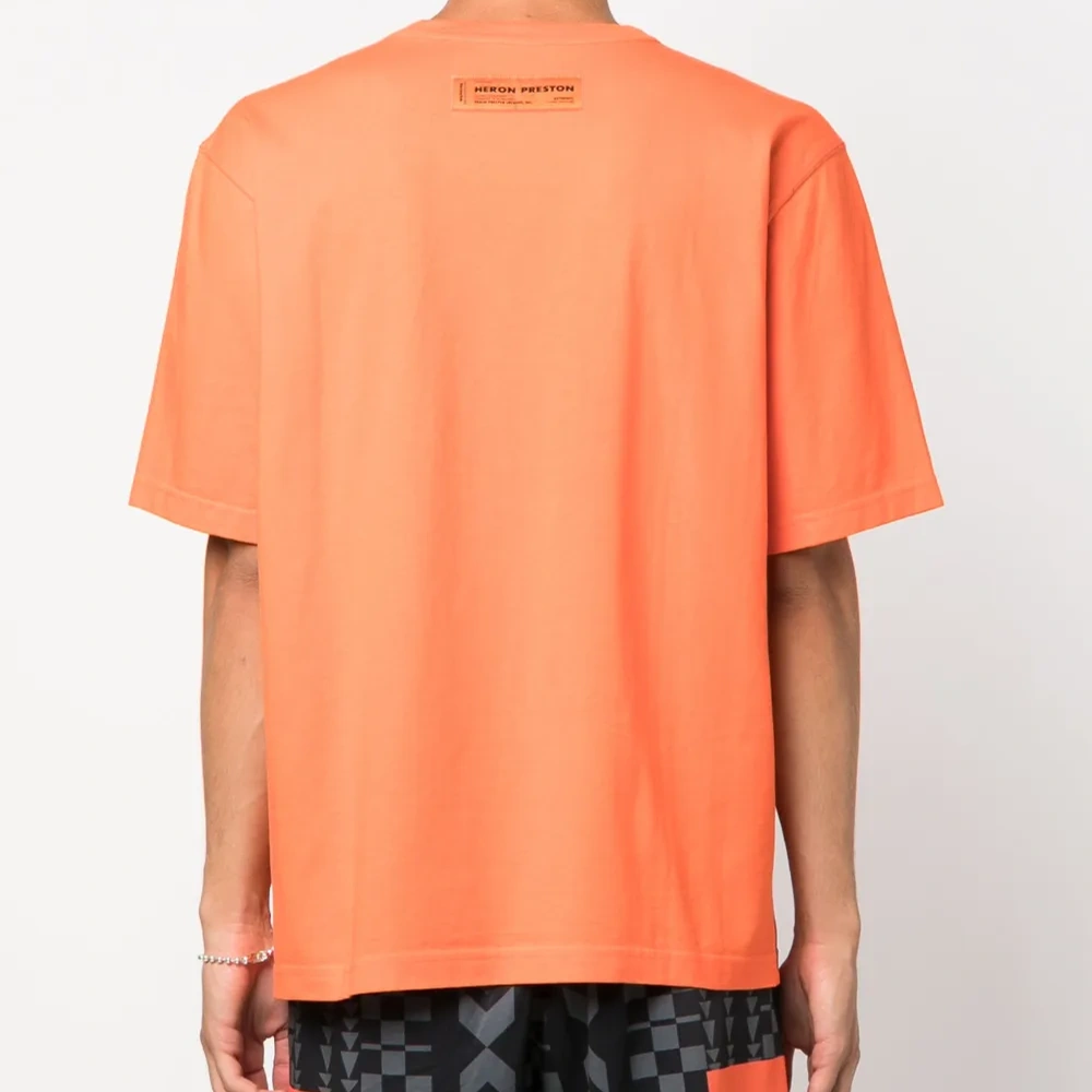 Оранжевый, белый, органический хлопок, круглый вырез, короткие рукава, логотип спереди и прямой подол.