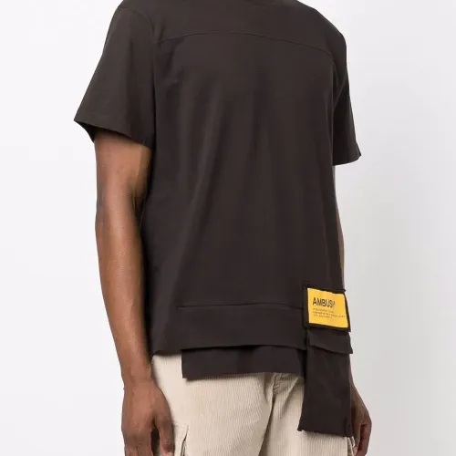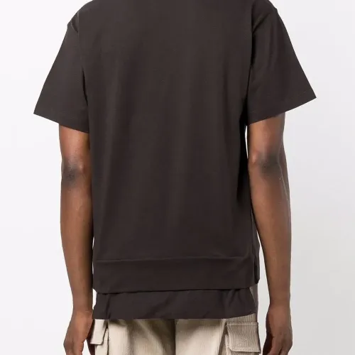 коричневый хлопок накладной карман круглый вырез короткие рукава прямой подол нашивка с логотипом