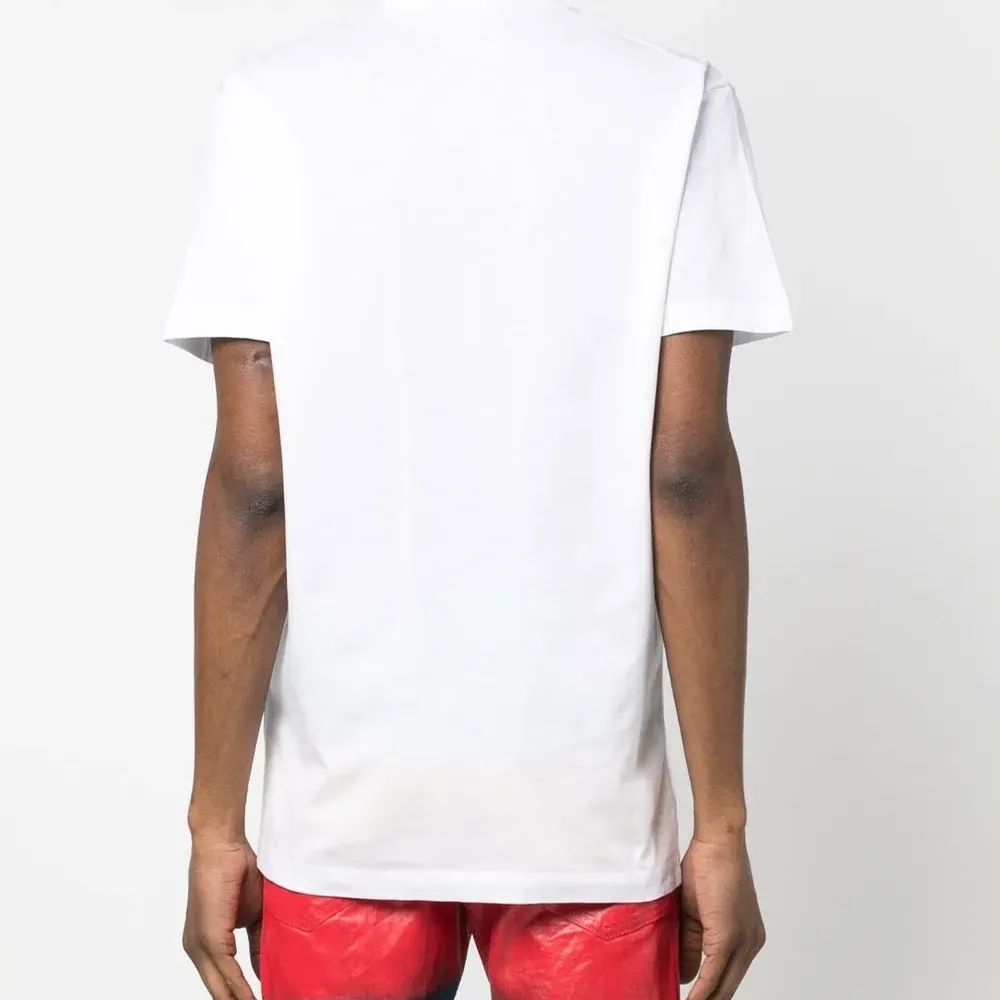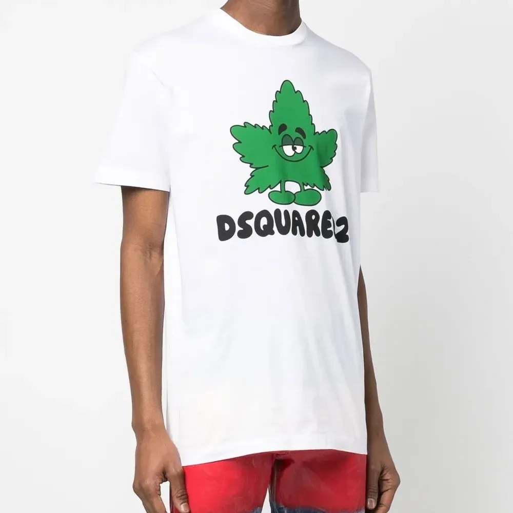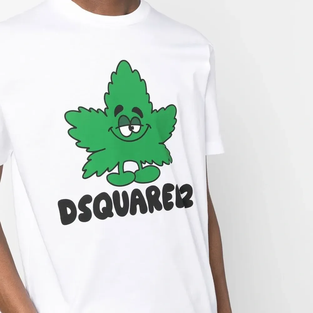 Белый, хлопок, мультипликационный принт, логотип спереди, графичный принт спереди, круглый вырез и короткие рукава.