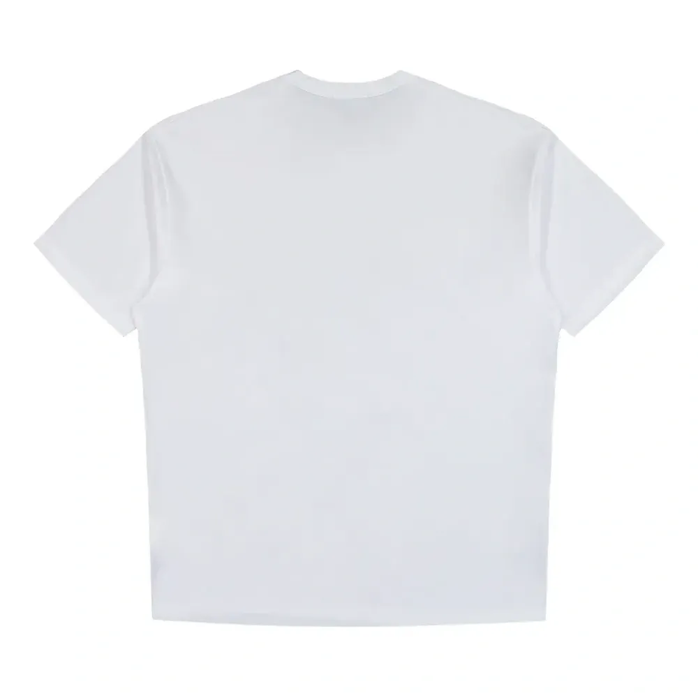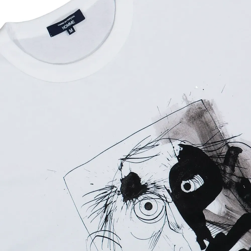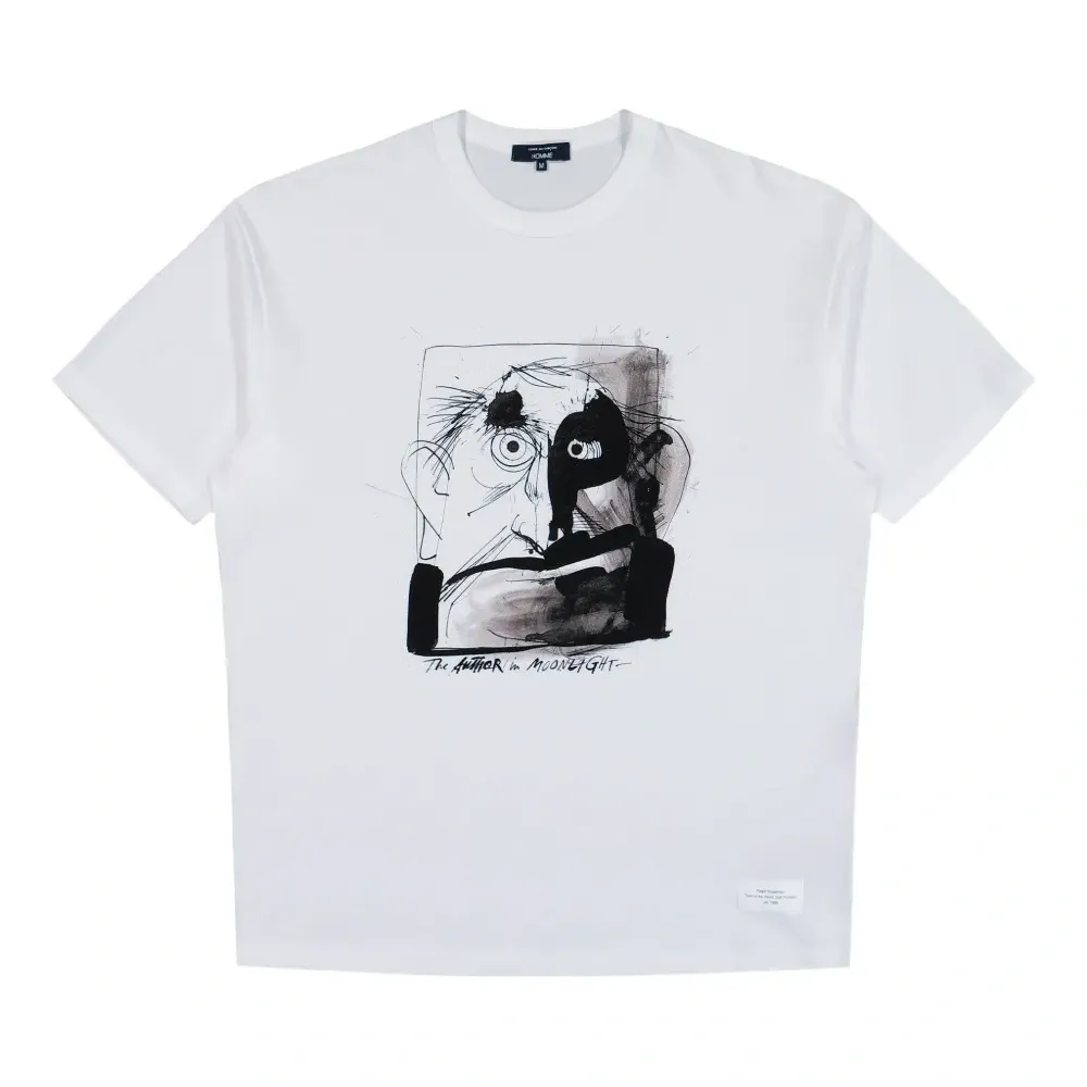 белая футболка с графическим принтом, круглым вырезом и короткими рукавами