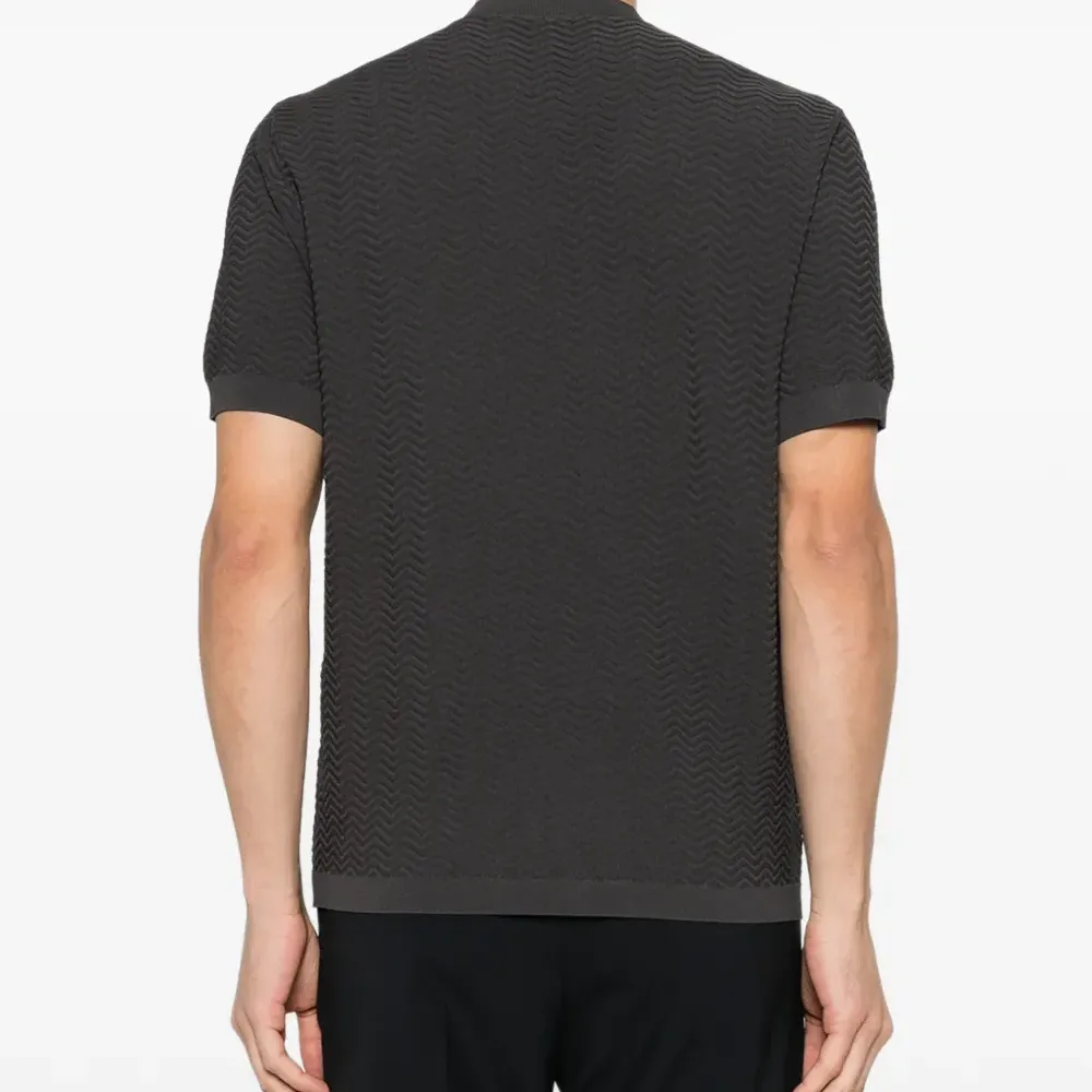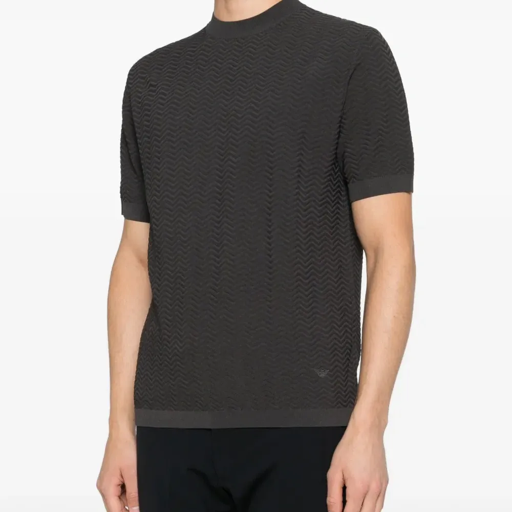 темно-серая футболка с шевронным узором, короткими рукавами, круглым вырезом и логотипом