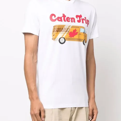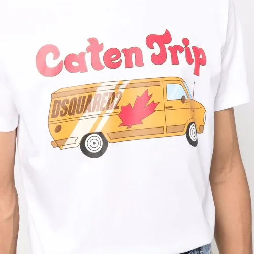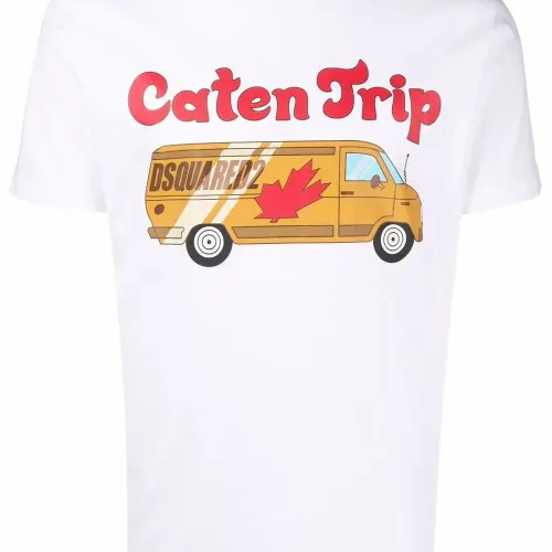 Графичный принт спереди, логотип спереди, круглый вырез, короткие рукава и прямой подол.