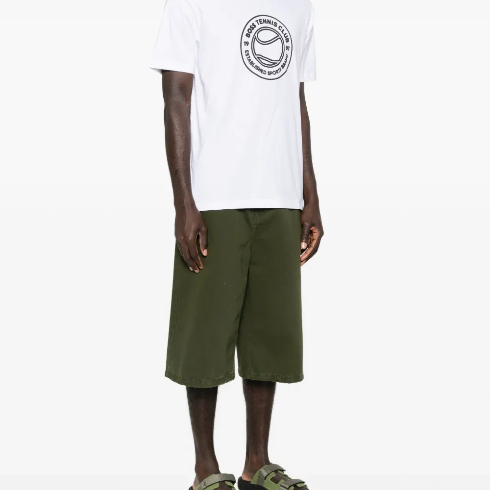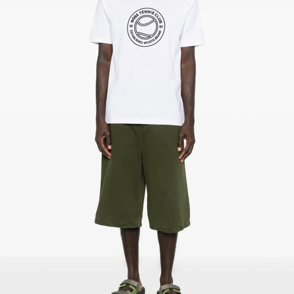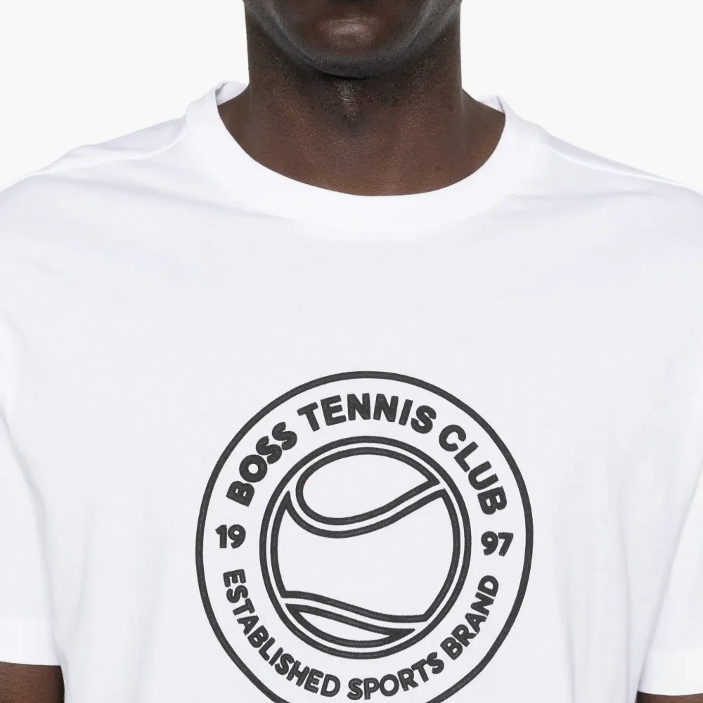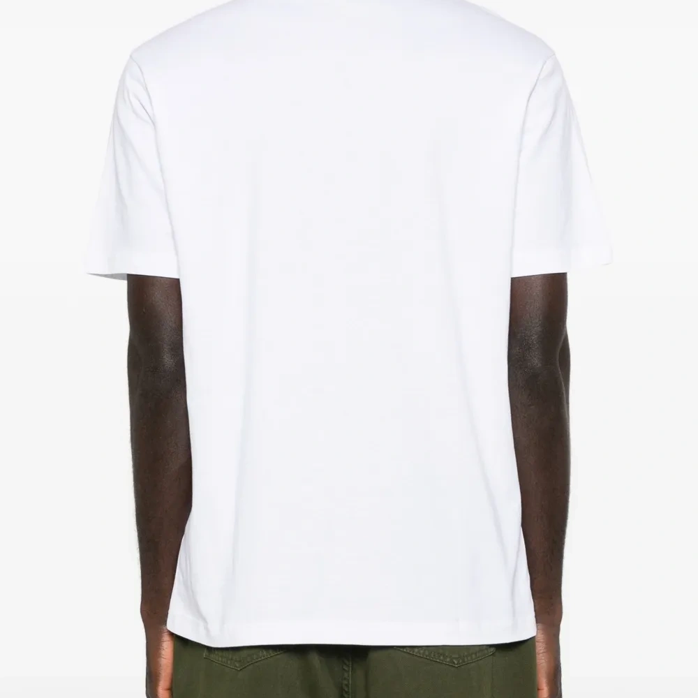 белая футболка с графическим принтом, круглым вырезом и короткими рукавами