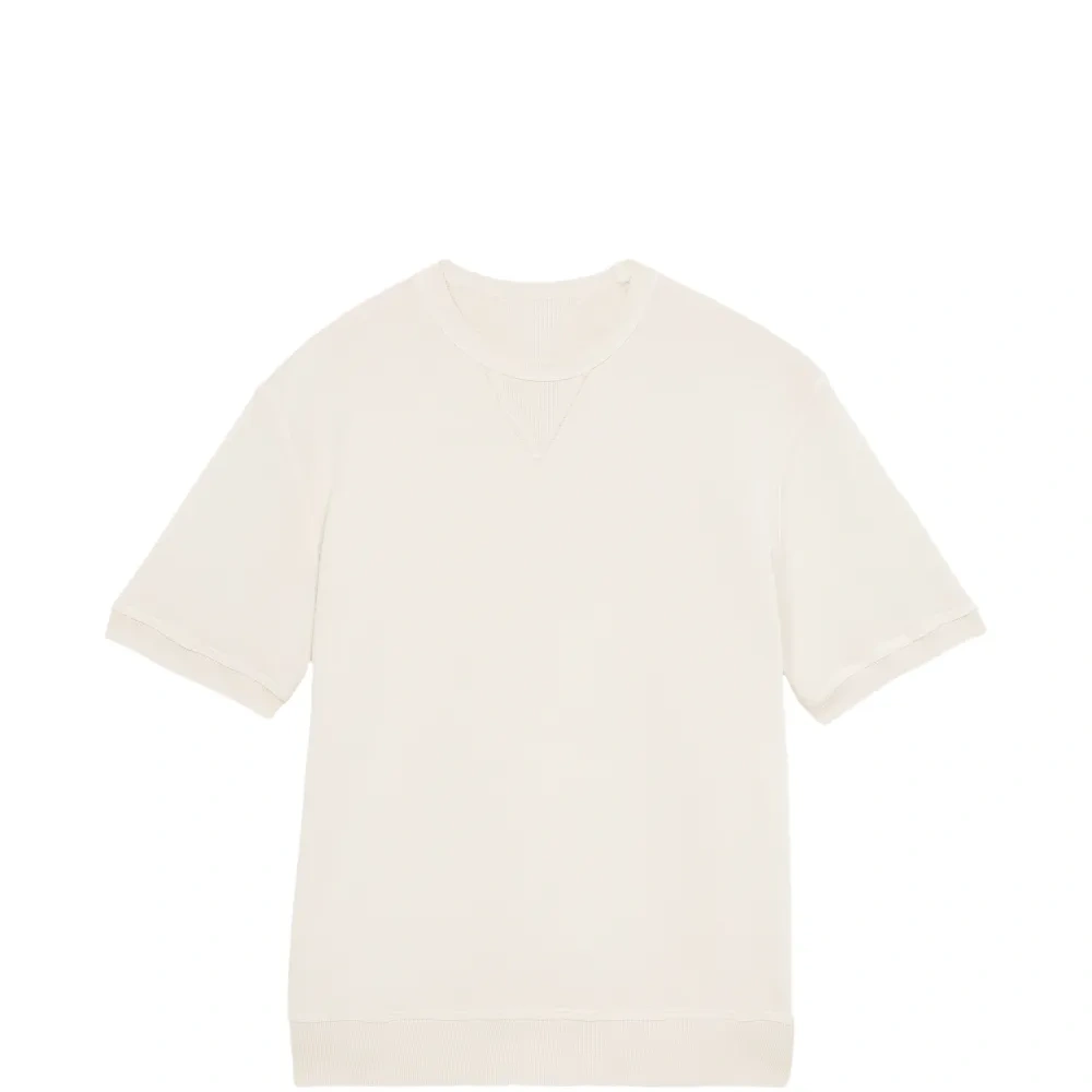 шорты цвета «тауpe» с эффектом браширования, ребристыми отделками, короткими рукавами, V-образным вырезом, контрастной строчкой