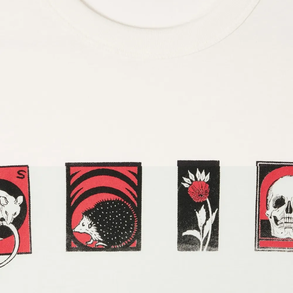 кремовая футболка с графическим принтом, круглым вырезом и короткими рукавами