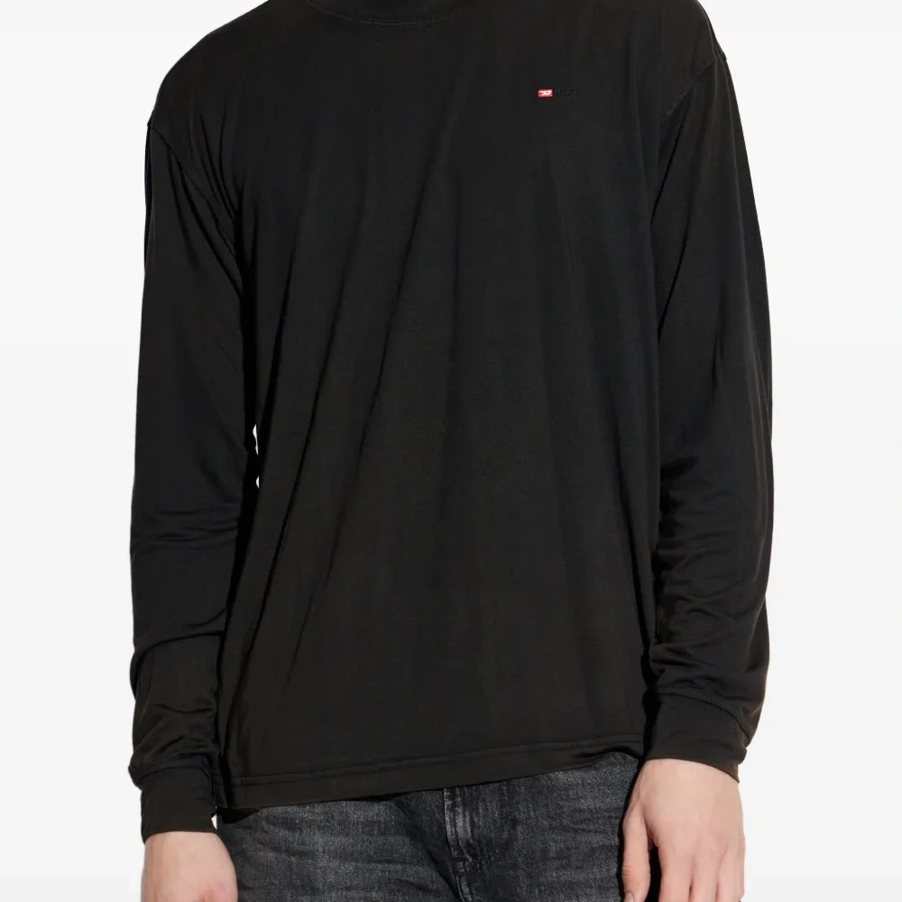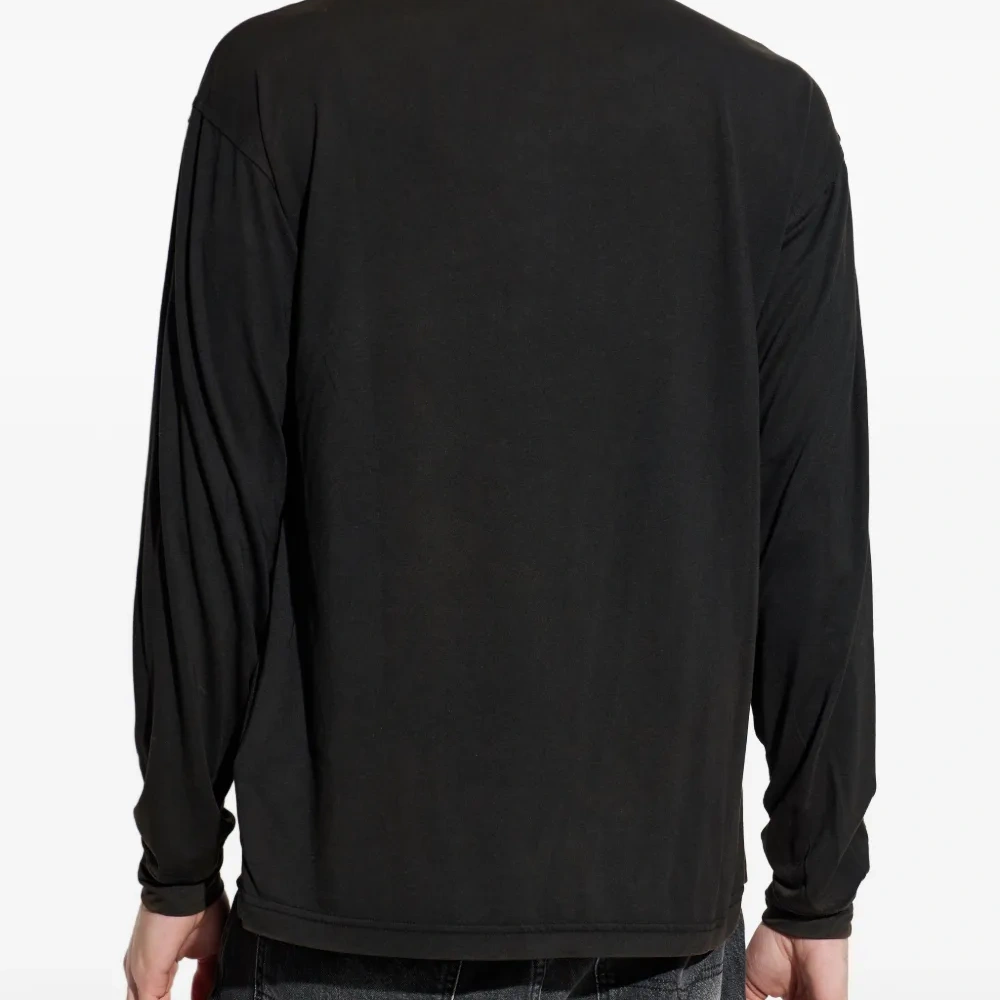 черная футболка с длинными рукавами, круглым вырезом и логотипом