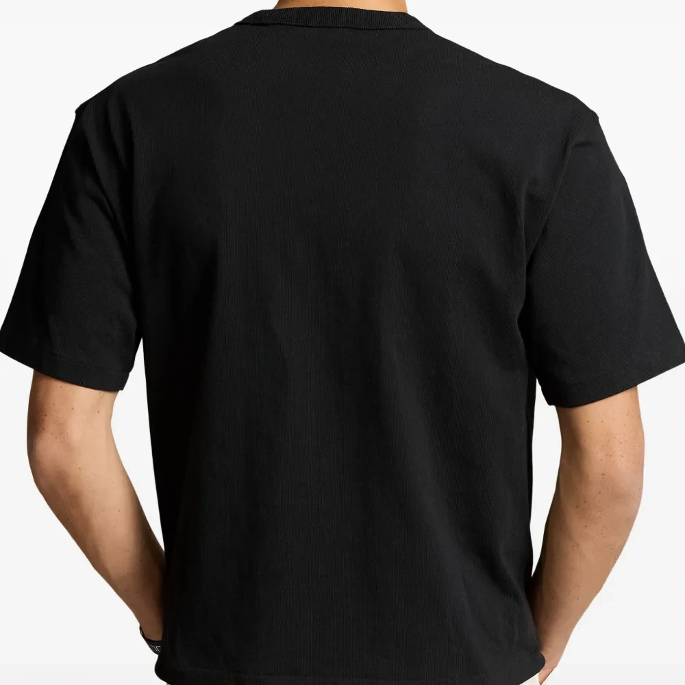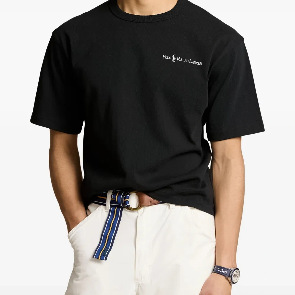 чёрная футболка с круглым вырезом, короткими рукавами и логотипом