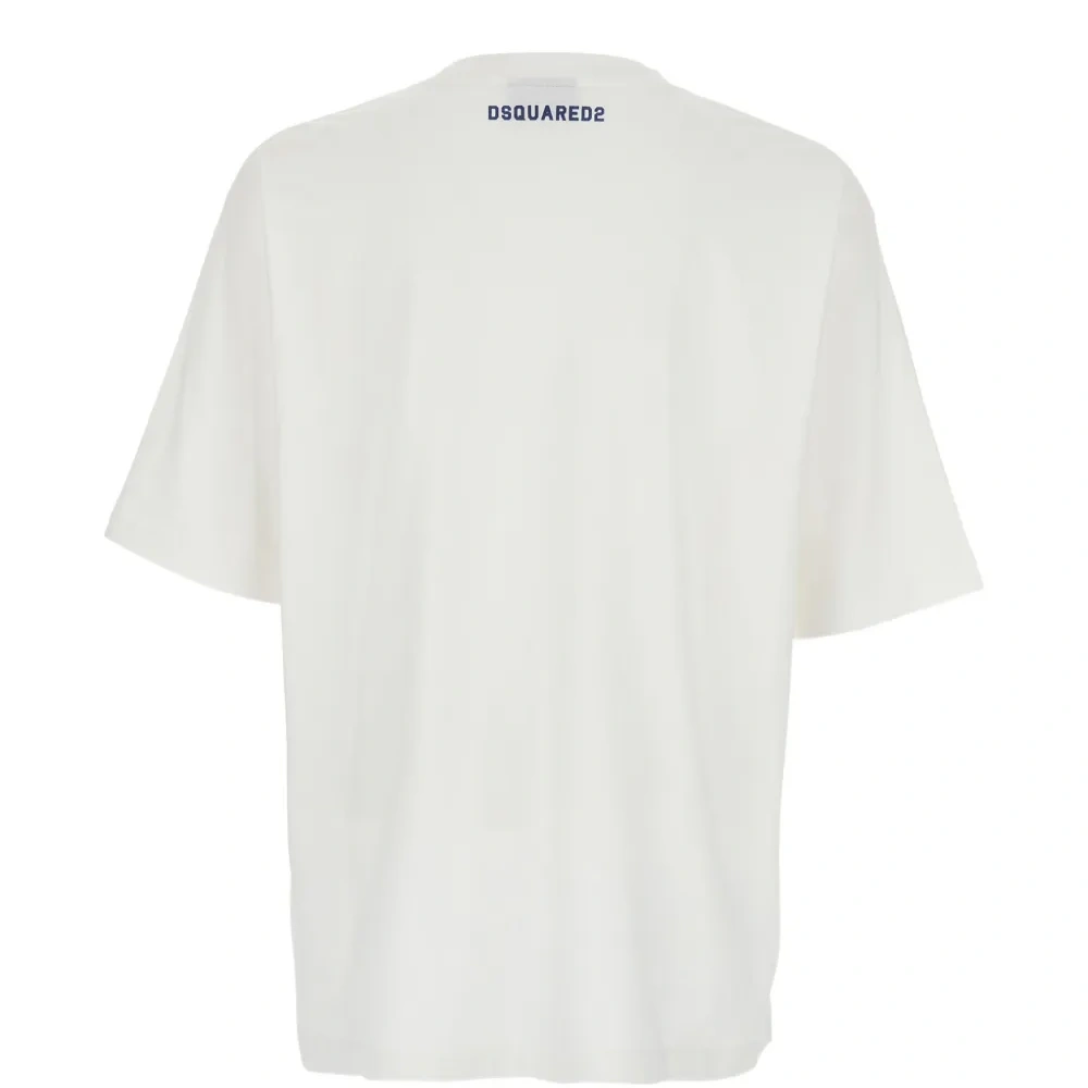 белый топ с аппликацией, круглый вырез, короткие рукава