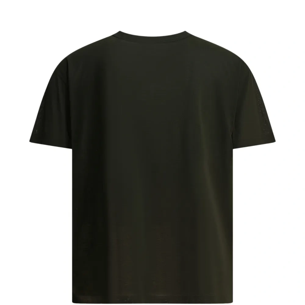 темно-зеленая футболка с круглым вырезом и принтом, с короткими рукавами