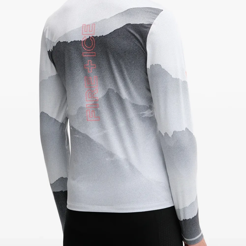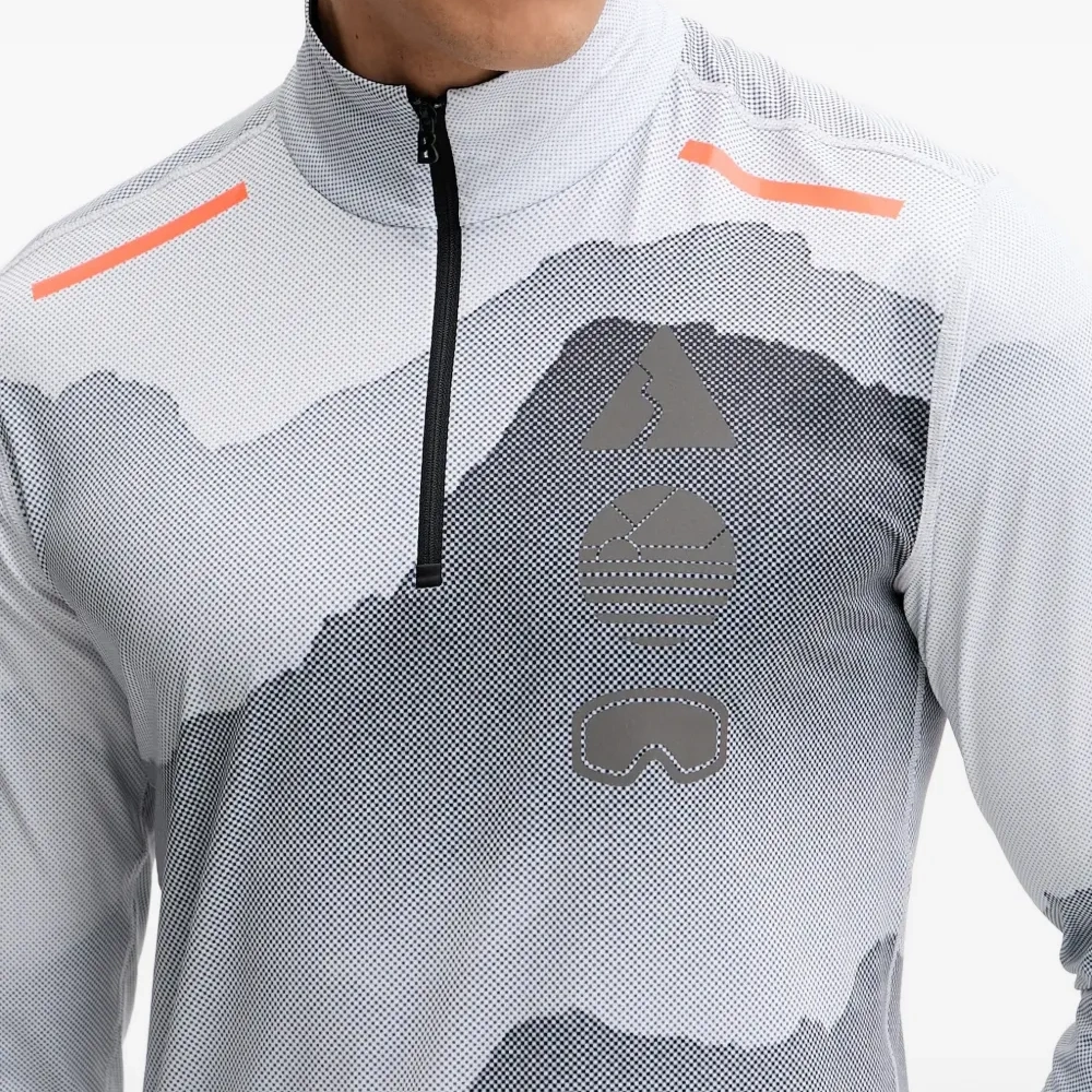серый с графичным принтом, застежка-молния, длинные рукава, высокий воротник