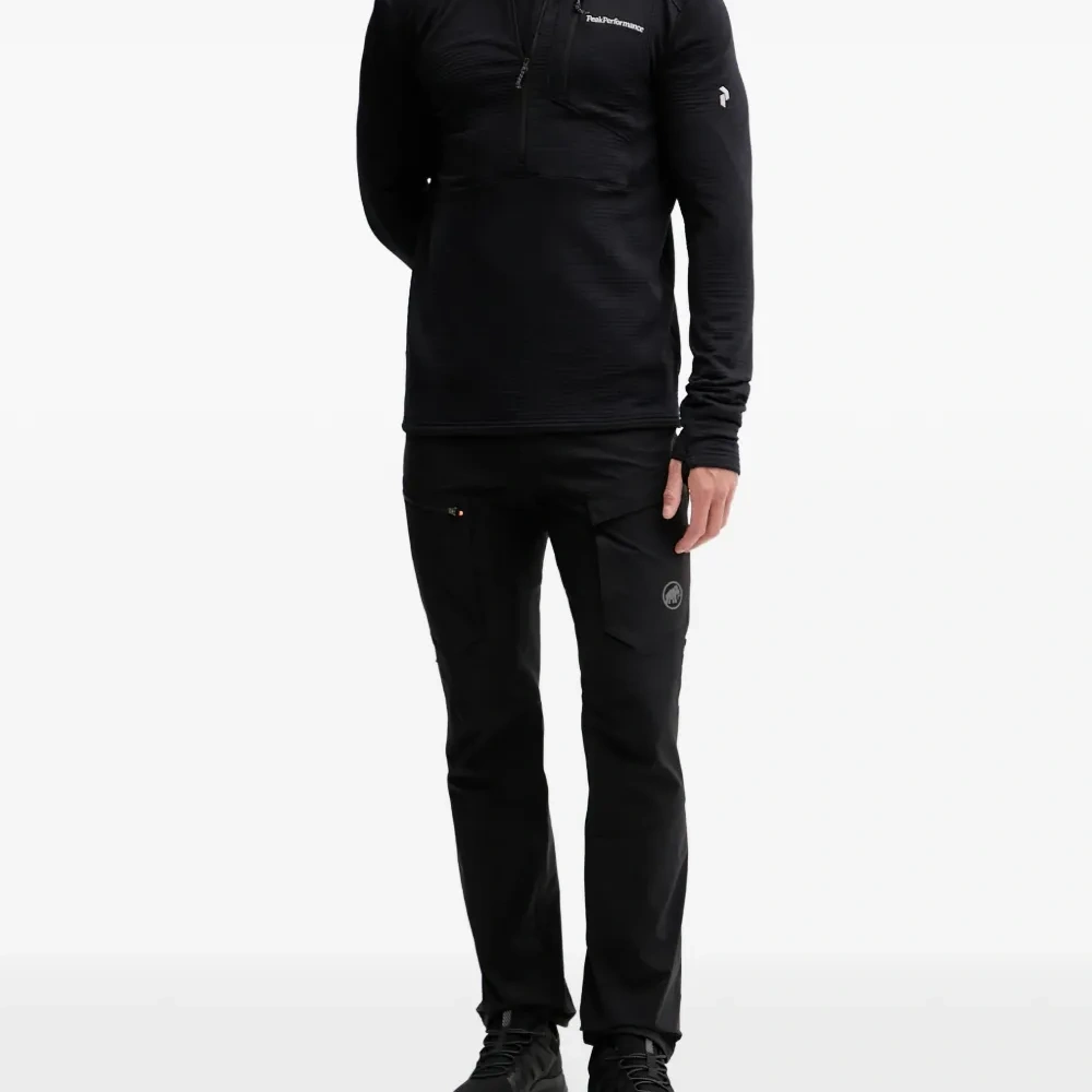 черная толстовка с молнией у ворота, нагрудным карманом, длинными рукавами и логотипом