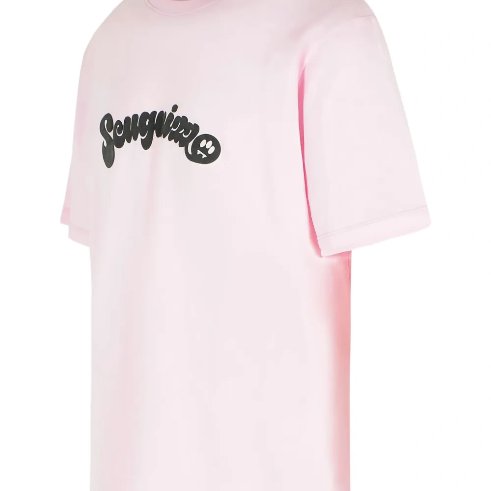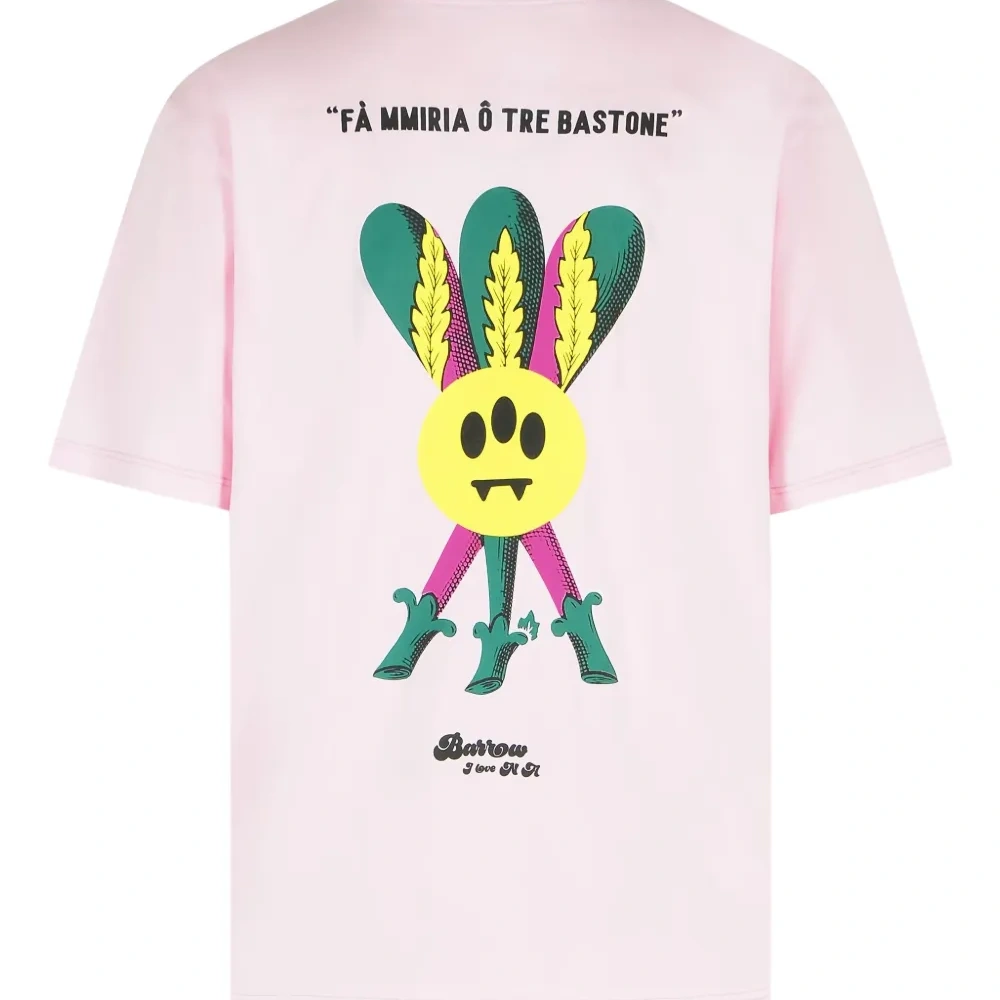 розовая рубашка в рубчик с круглым вырезом, фольклорными символами и короткими рукавами