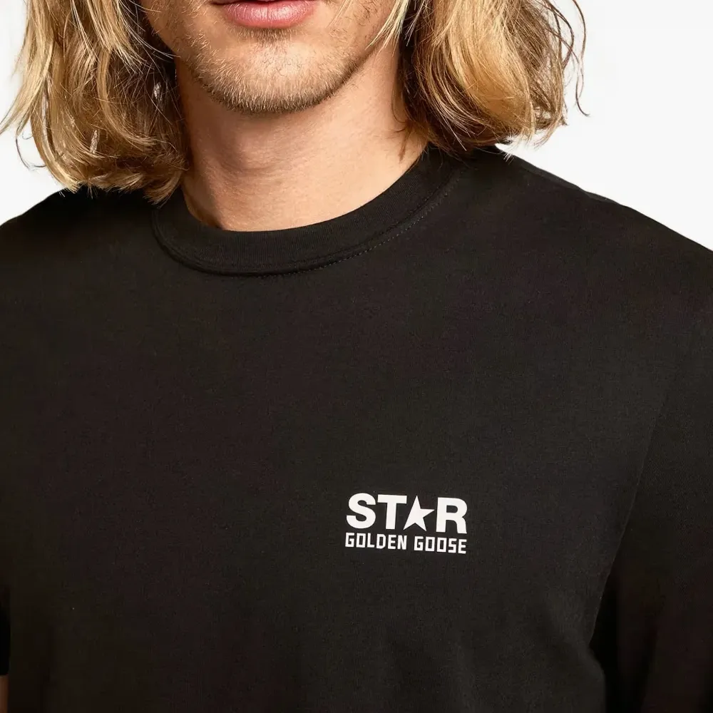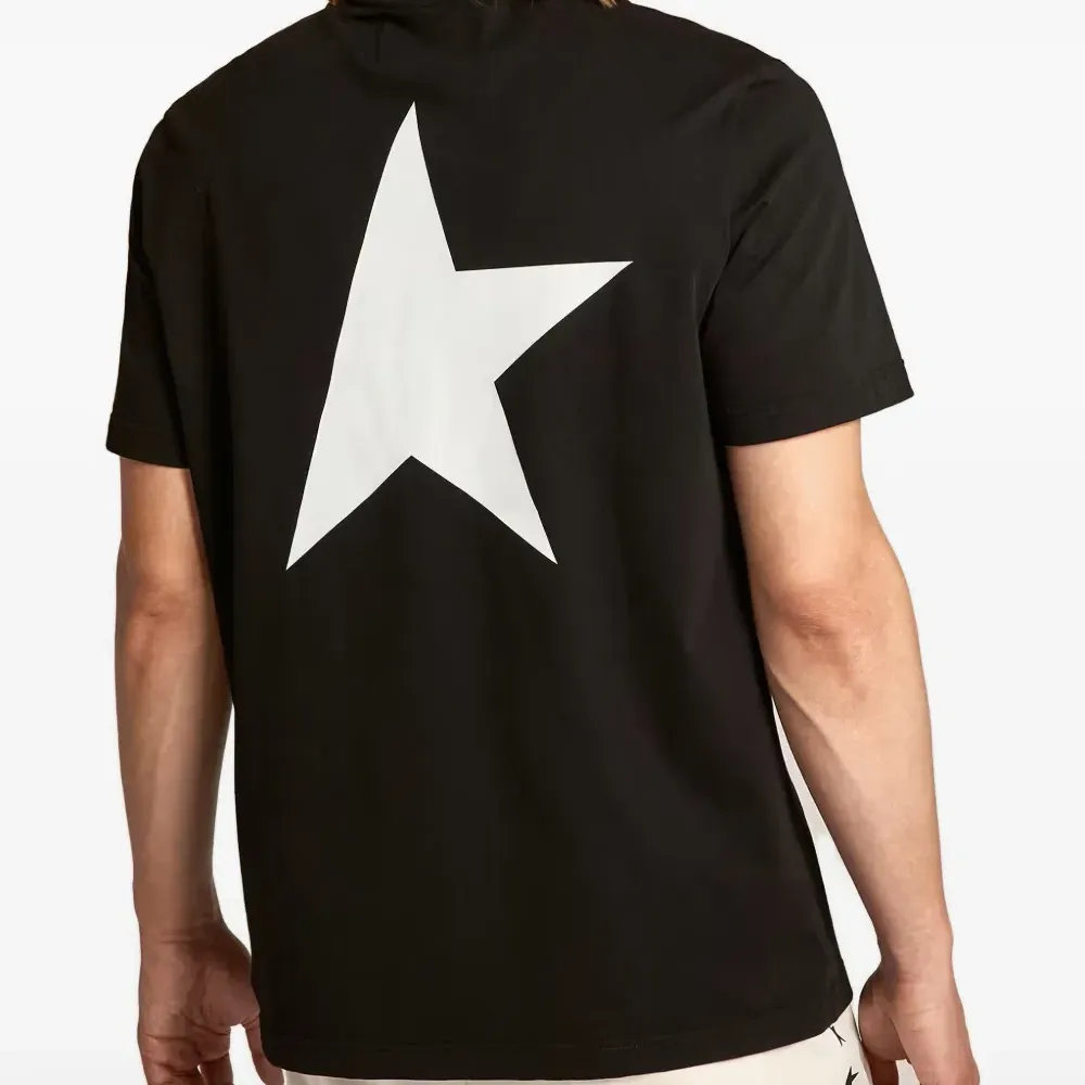 чёрная футболка с изображением звезды, круглым вырезом и короткими рукавами