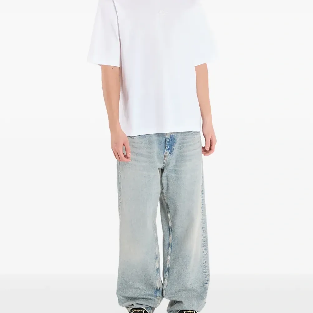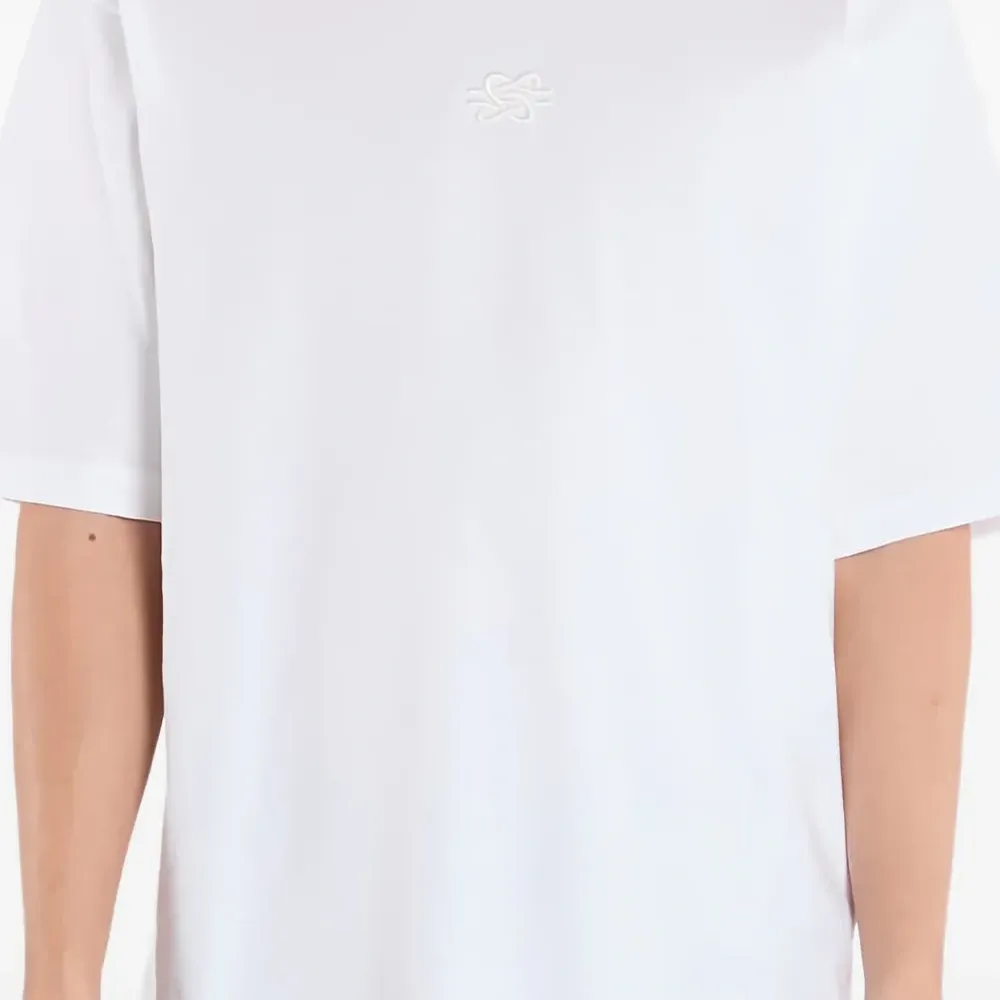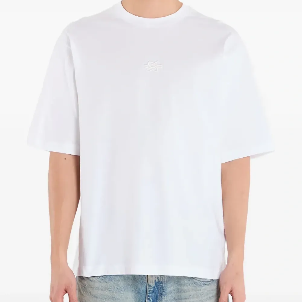 белая футболка свободного кроя с вышивкой, круглым вырезом и короткими рукавами