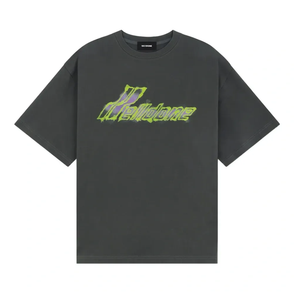 серый топ с круглым вырезом, короткими рукавами и логотипом