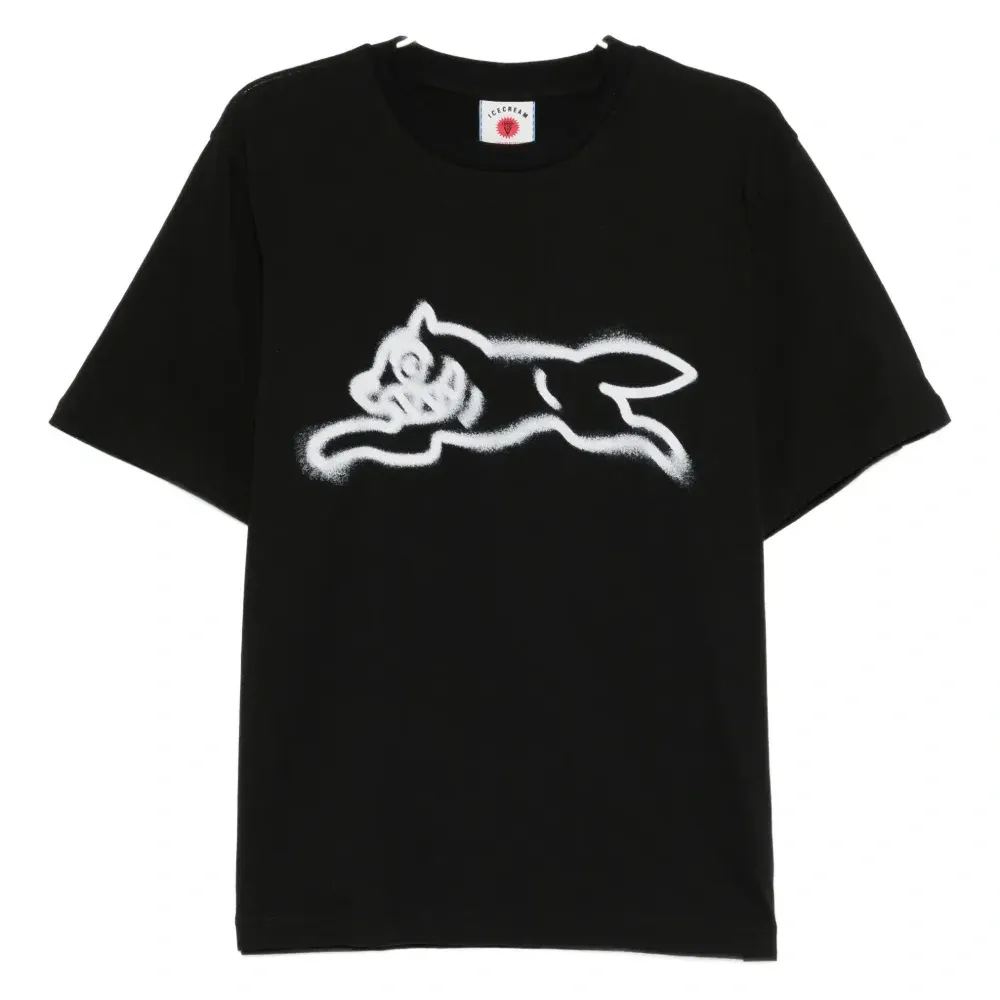 Футболка с изображением бегущей собаки в стиле граффити
