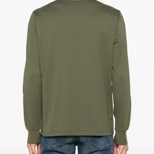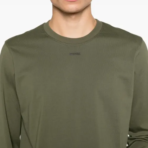 оливково-зеленый свитер с круглым вырезом, длинными рукавами и логотипом