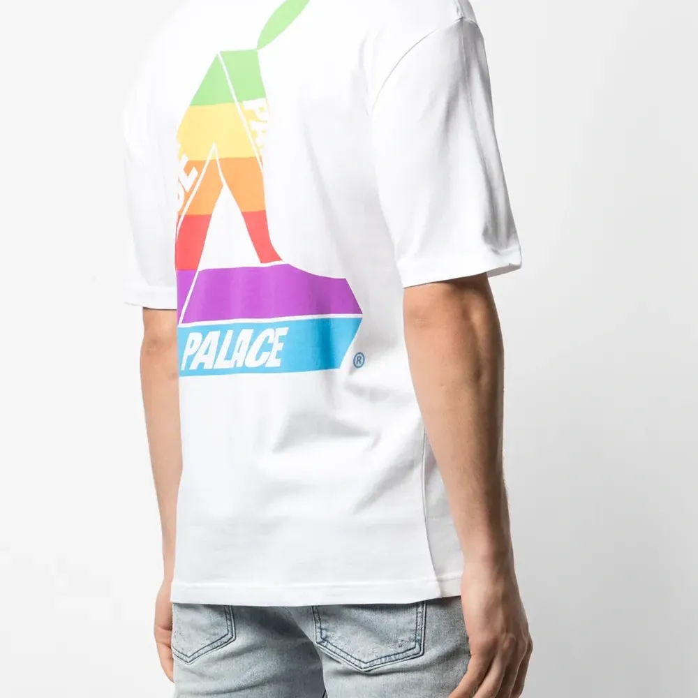 Футболка Jobsworth от Palace. Круглый вырез под горло с окантовкой, логотип на груди, узор сзади и короткие рукава. Цвет: белый. Эта модель представлена на маркетплейсе, где можно найти самые редкие модели одежды и кроссовок, о которых мечтают коллекционеры и любители streetwear по всему миру.