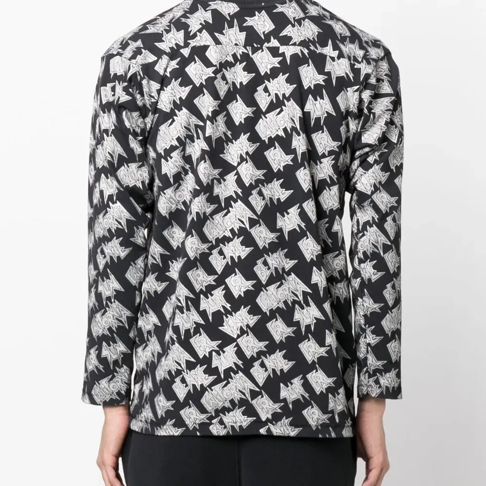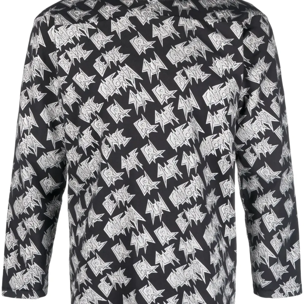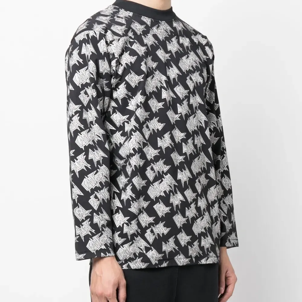 Черный/белый, хлопок, сплошной принт с логотипом, круглый вырез, длинные рукава и прямой подол.