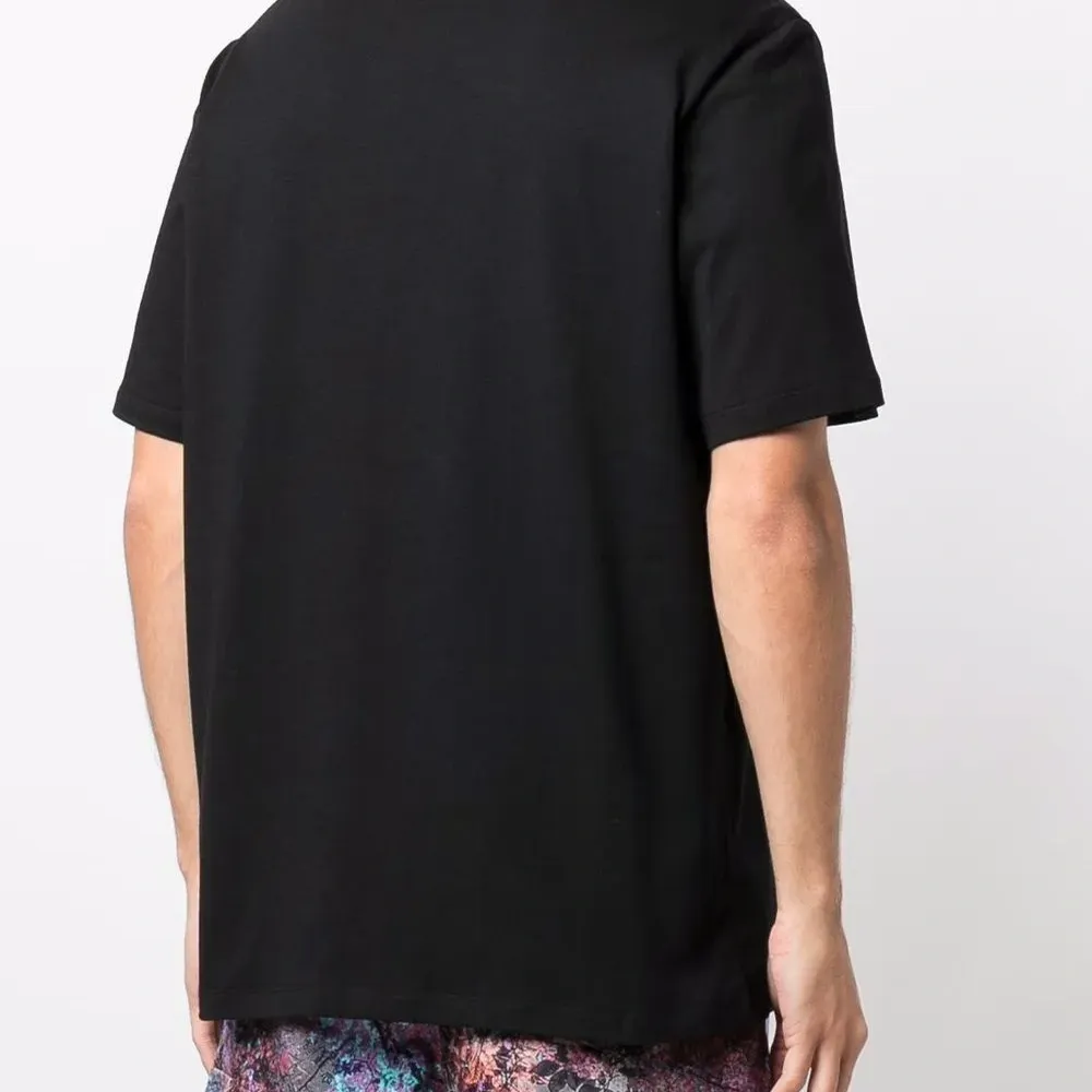 Логотип спереди, круглый вырез, короткие рукава и прямой подол.