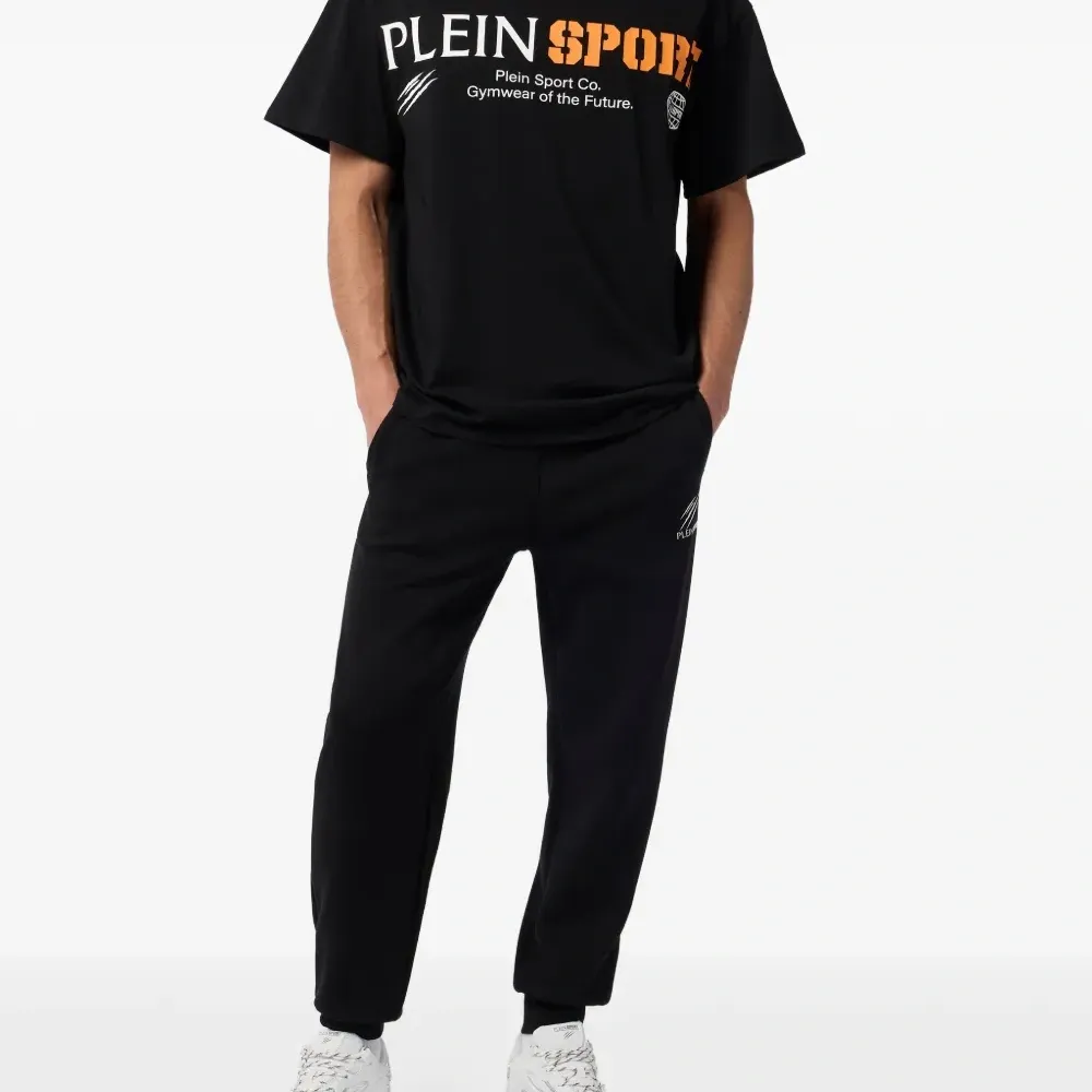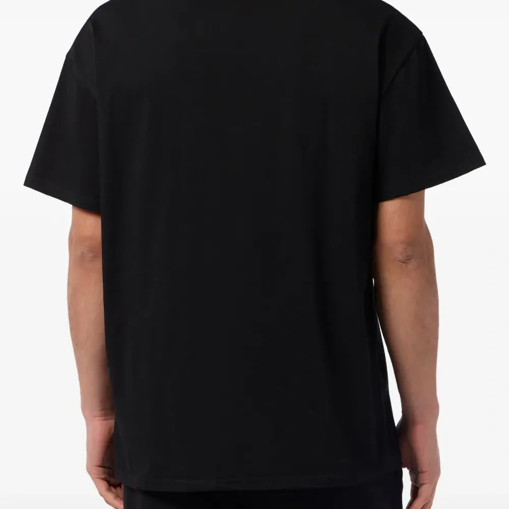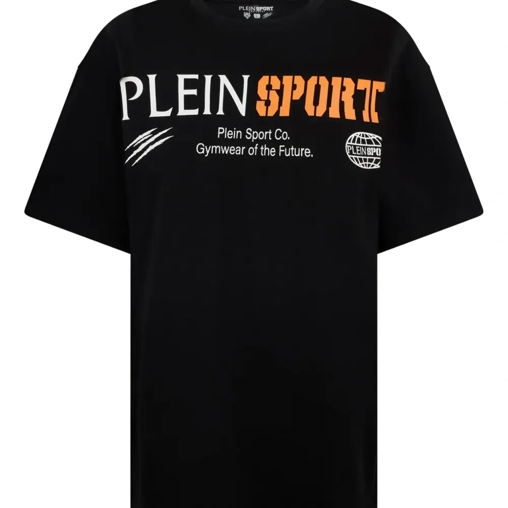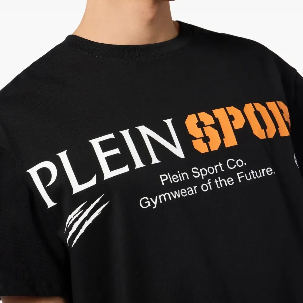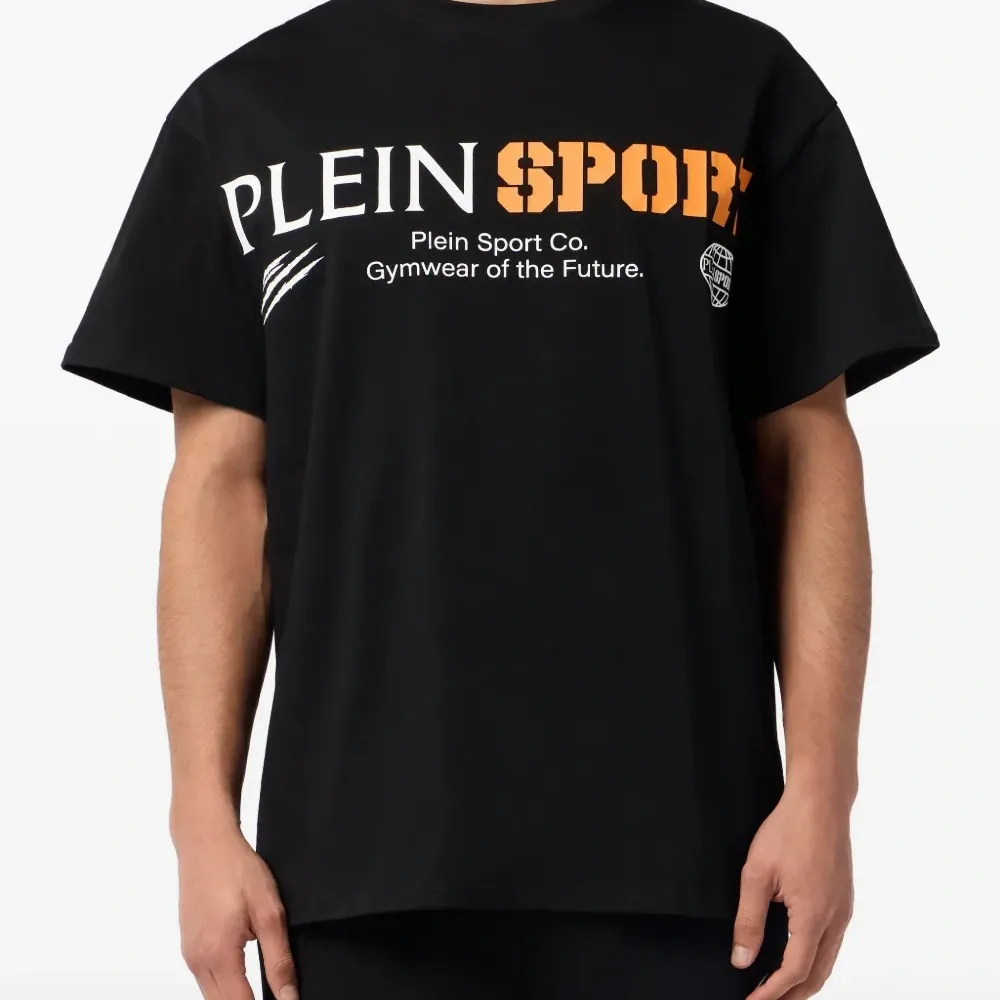 черный, оранжевые детали, логотип на груди, круглый вырез, короткие рукава
