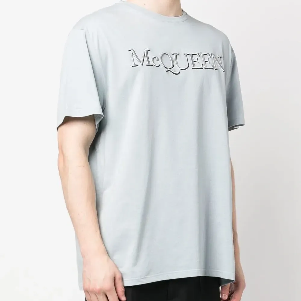 Серый, хлопок, ткань джерси, логотип спереди, круглый вырез, короткие рукава и прямой подол.