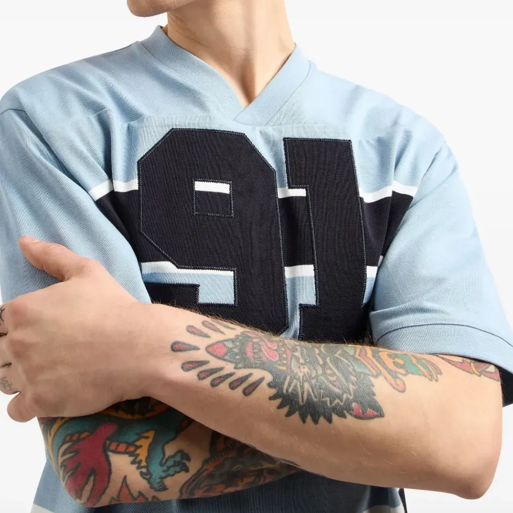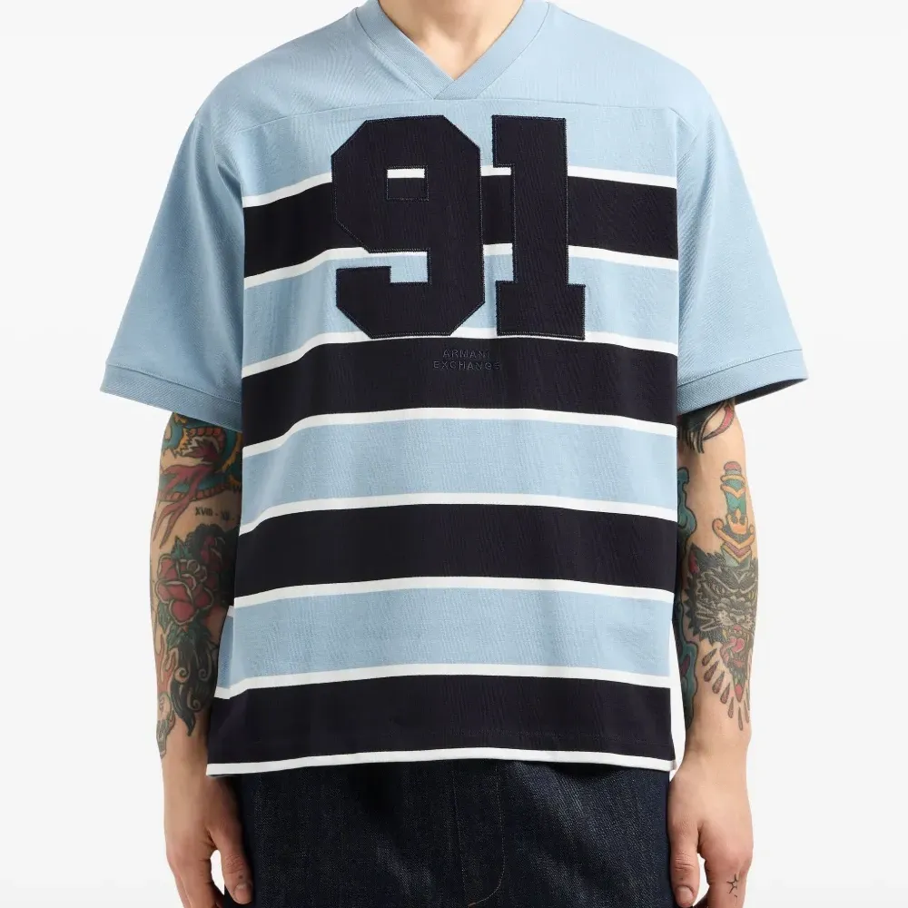 Полосатая футболка с V-образным вырезом