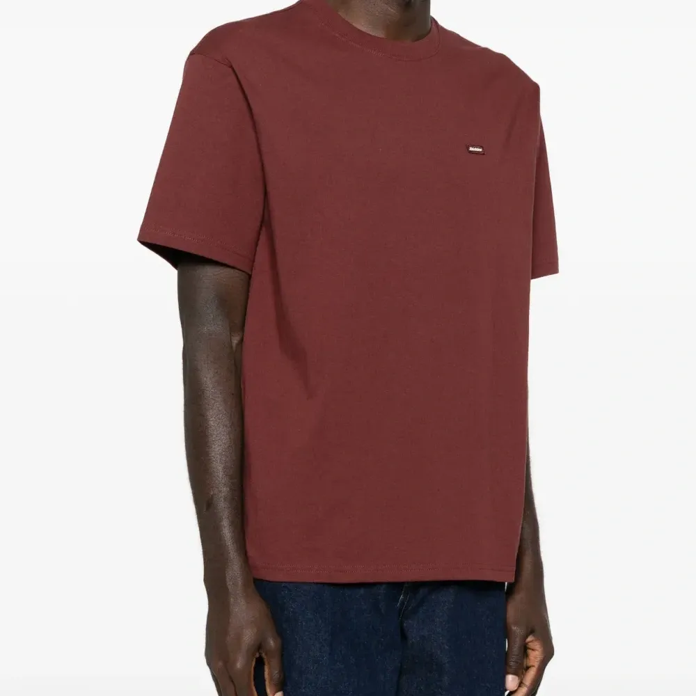 красная нашивка с логотипом, круглый вырез, короткие рукава