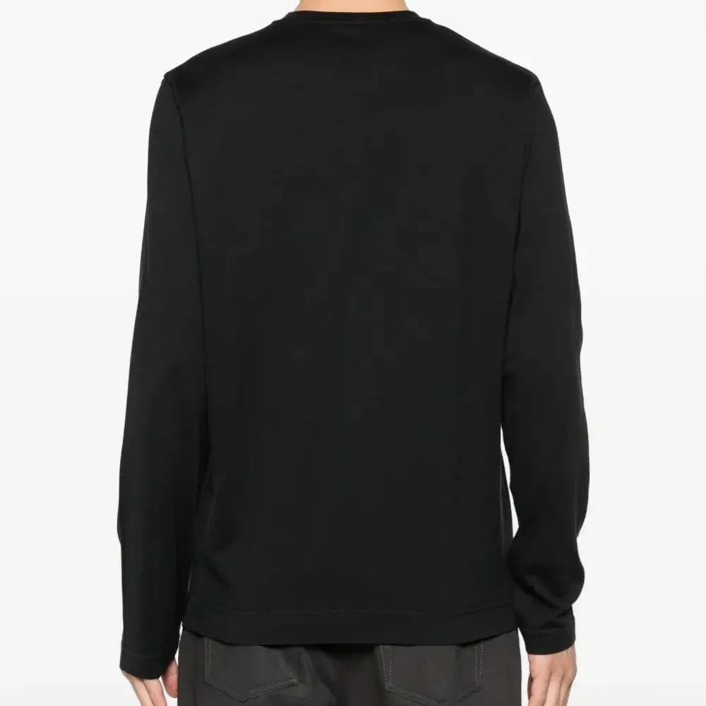черный, длинные рукава, круглый вырез горловины, ребристый нижний край, ребристые манжеты