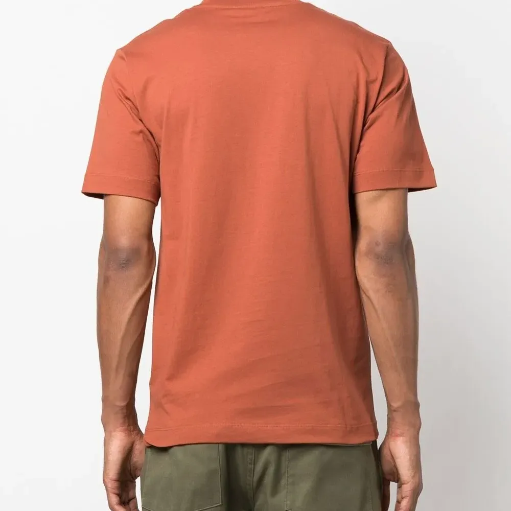 Коричнево-терракотовый, органический хлопок, логотип спереди, круглый вырез, короткие рукава и прямой подол. Ответственный выбор: Этот товар как минимум на 50% состоит из органических материалов.