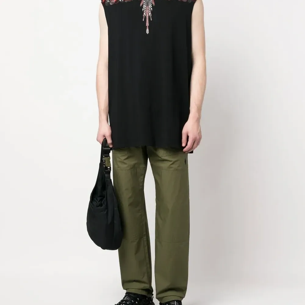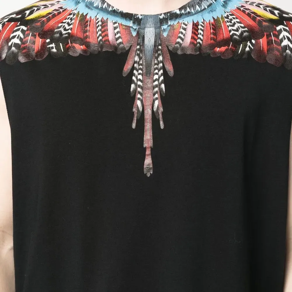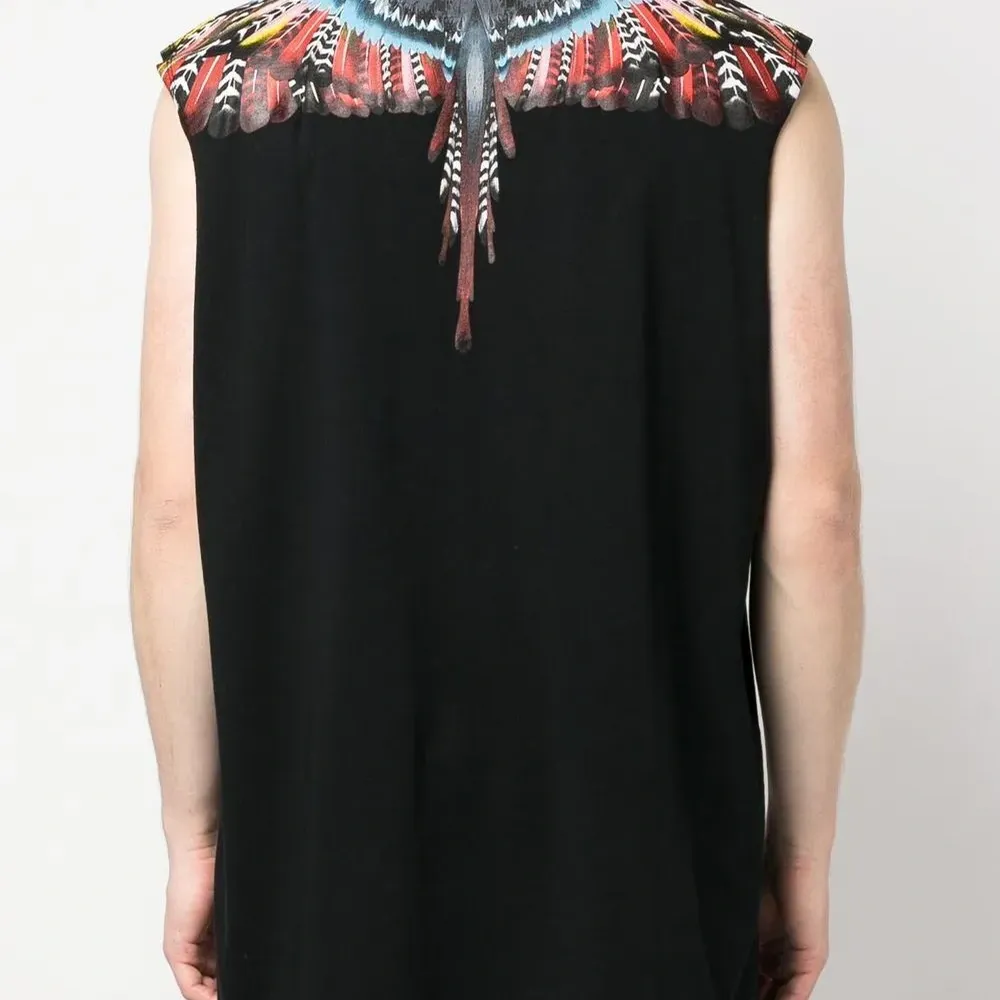 Черный/разноцветный, органический хлопок, принт Marcelo Burlon Wings, круглый вырез, без рукавов и прямой подол. Ответственный выбор: