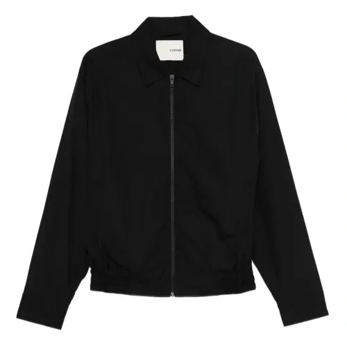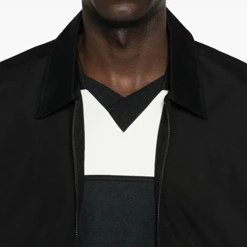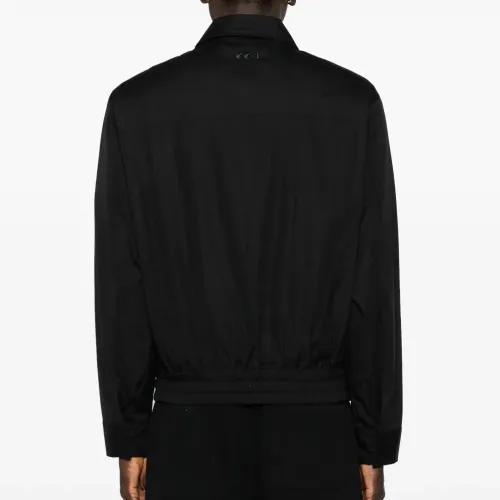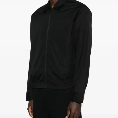 черная куртка с застежкой-молнией, отложным воротником, длинными рукавами и эластичным нижним краем