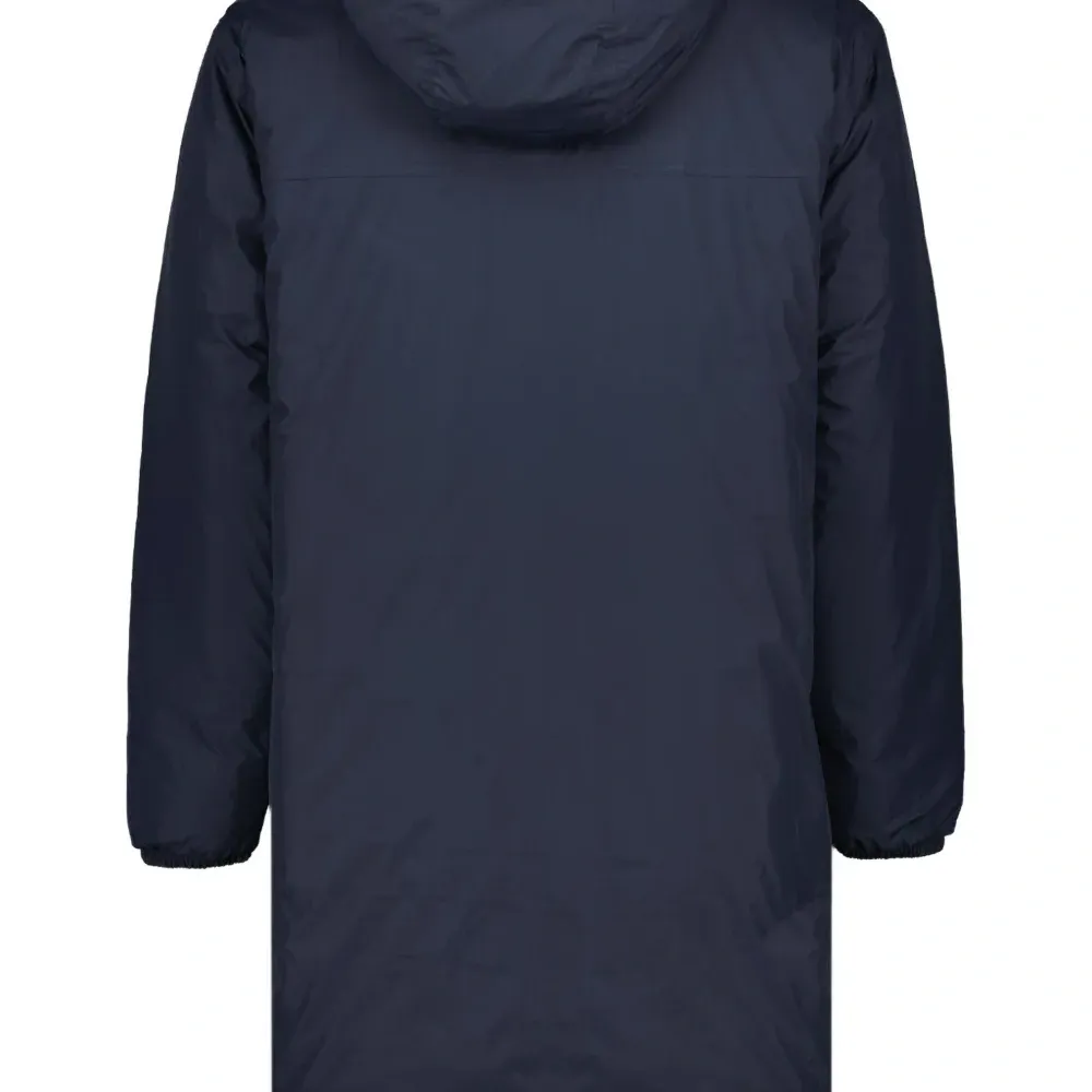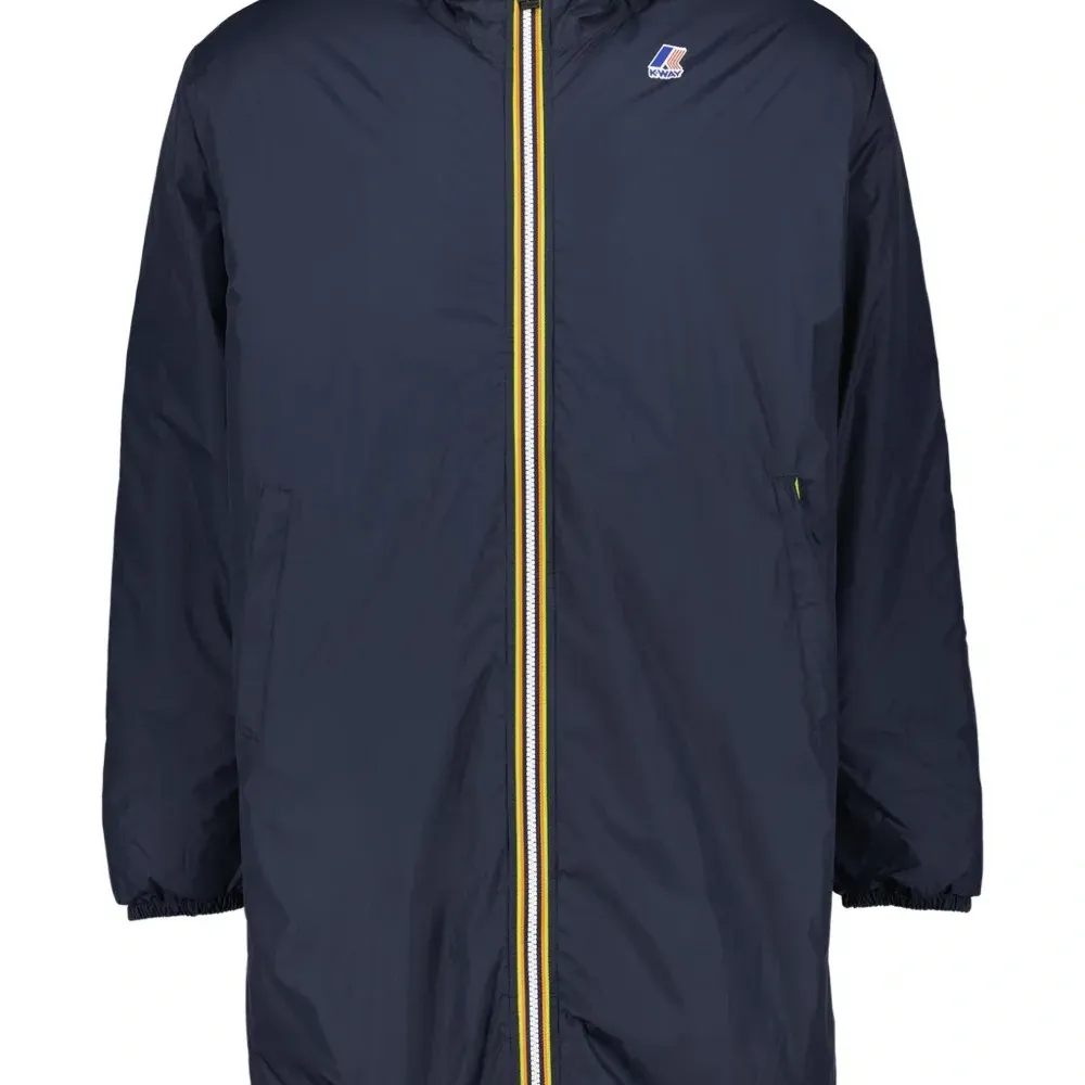 тёмно-синий цвет, логотип, фиксированный капюшон, застёжка-молния спереди, эластичные манжеты