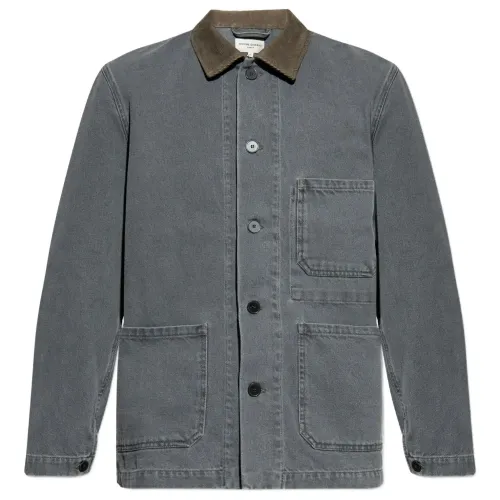 серый несколько накладных карманов застежка на пуговицы спереди воротник из вельвета длинные рукава