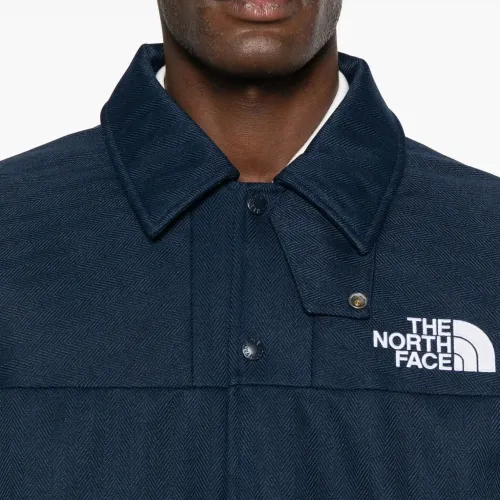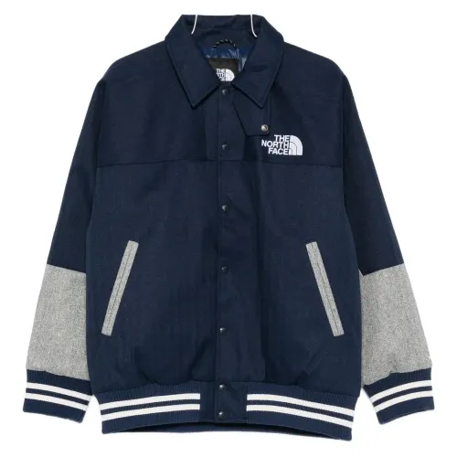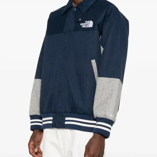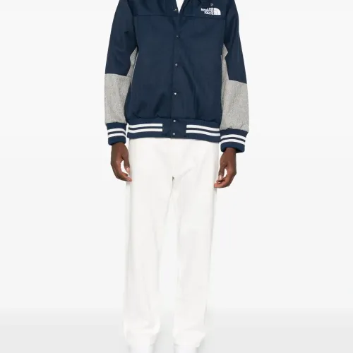 синяя нашивка с логотипом, полосатый край, застежка на кнопки, длинные рукава, боковые прорезные карманы