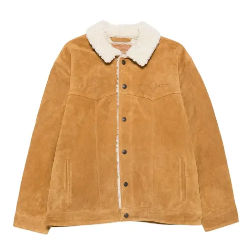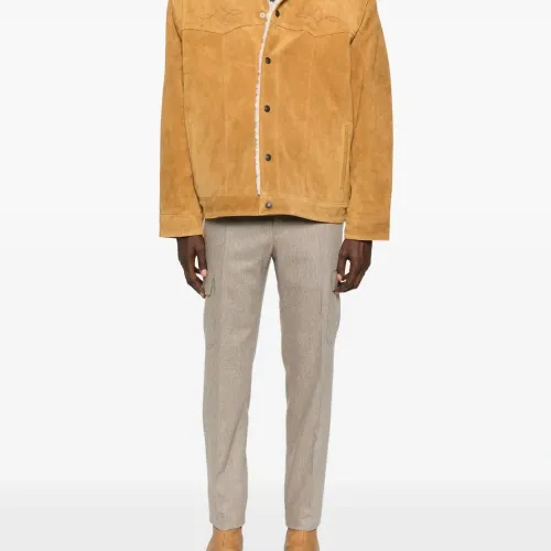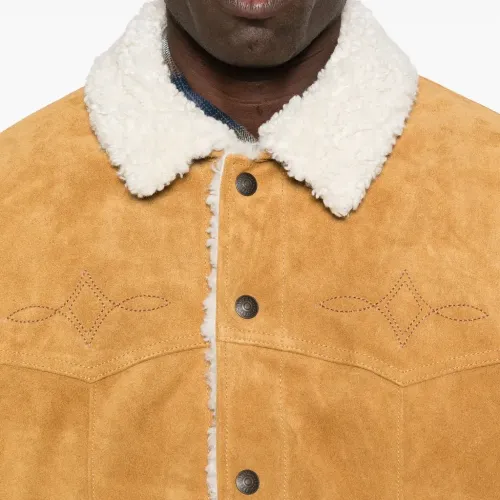 желтый замша воротник из овчины застежка на кнопках детали строчки боковые прорезные карманы