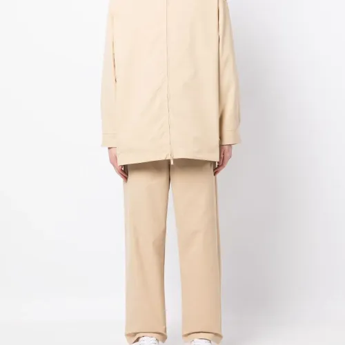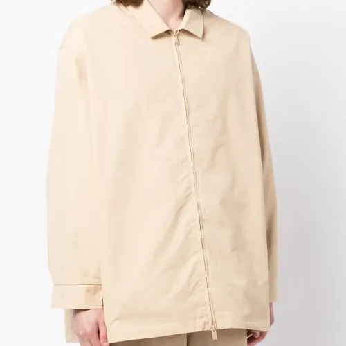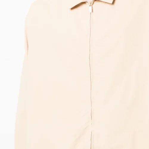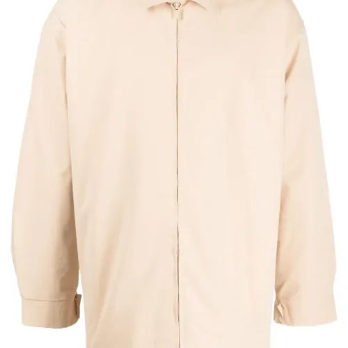 Песочно-бежевый, смесовый хлопок, нашивка с логотипом сзади, классический воротник, застежка на молнии спереди и длинные рукава.