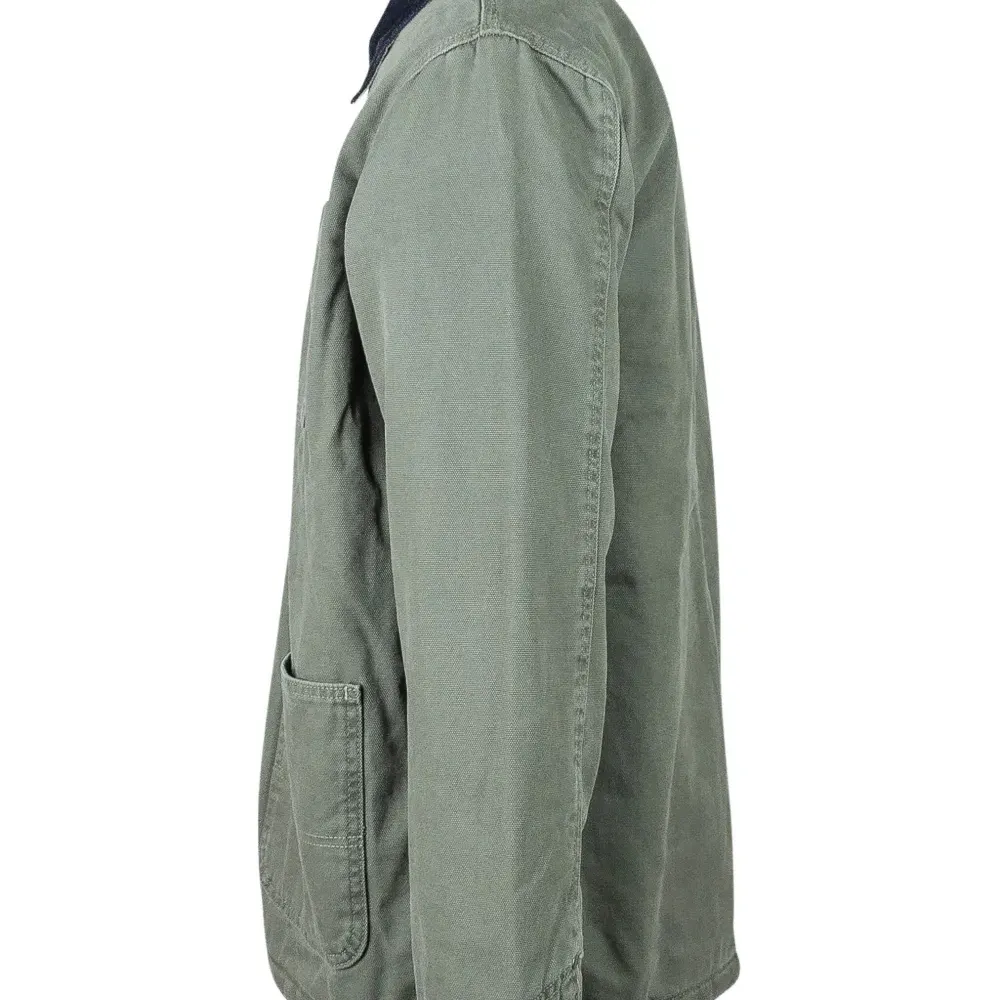 хаки, вельветовый воротник, застёжка на пуговицы, накладные карманы, манжеты на пуговицах