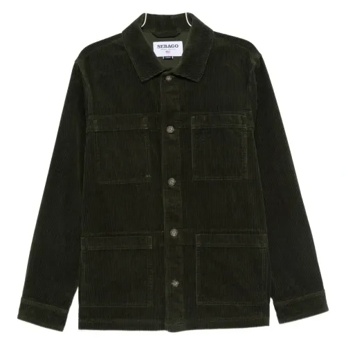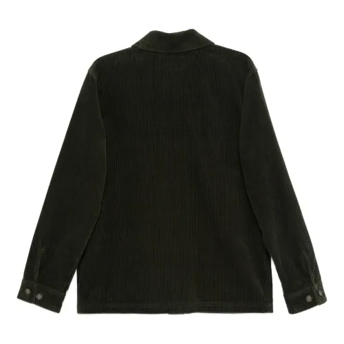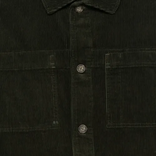 тёмно-зелёная вельветовая фактура, застёжка на пуговицы, множество карманов, длинные рукава
