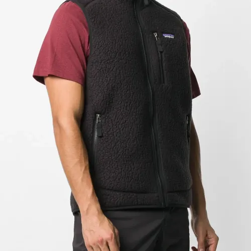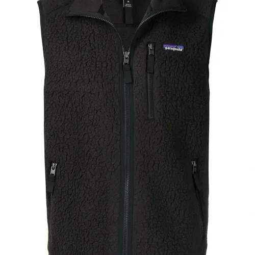 Жилет Retro Pile от Patagonia. Воротник с высокой стойкой, застежка на молнии спереди, модель без рукавов, нагрудный карман на молнии, боковые карманы на молнии и заплатка с логотипом спереди. Цвет: черный. POSITIVELY CONSCIOUS: Мы объединились с агентством Good On You, которое составляет рейтинг ответственных брендов. Этот бренд получил отметку «Ответственный выбор», потому что отвечает ключевым стандартам агентства.