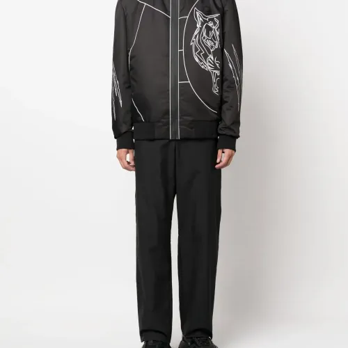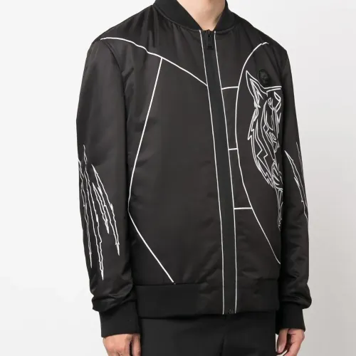Черный/белый, геометричный принт, принт с изображением тигра, бейсбольный воротник, потайная молния спереди, длинные рукава, рукава с узкими манжетами и подол в рубчик.