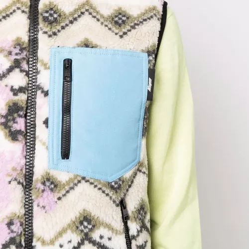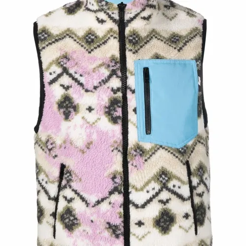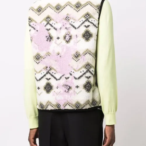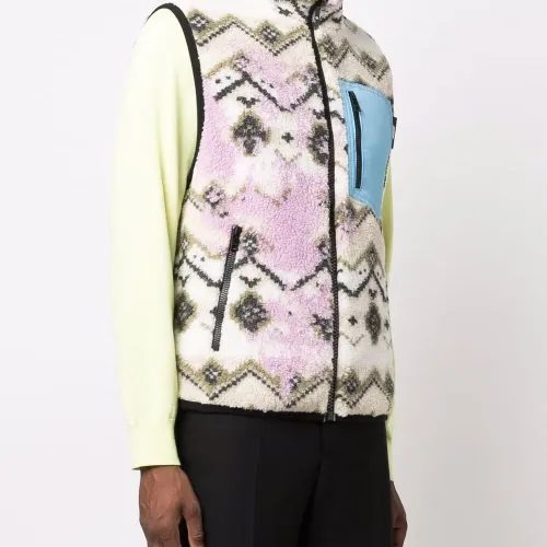 разноцветный двухсторонний дизайн зигзагообразный принт воротник-стойка застежка на молнии спереди два нагрудных кармана на молнии без рукавов два кармана на молнии по бокам прямой подол