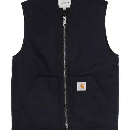темно-синий застежка-молния накладные карманы без рукавов хлопок бейзбольный воротник нашивка с логотипом