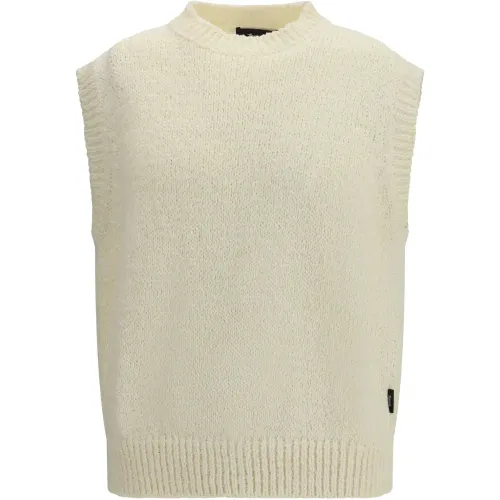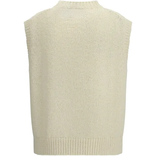 вязаный топ без рукавов цвета "off-white" с круглым вырезом и ребристым краем