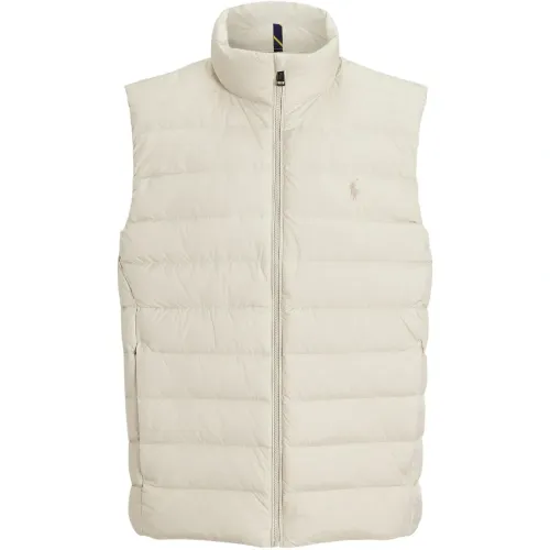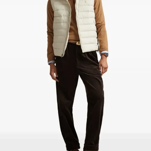 базовый песочный цвет, стёганый дизайн, застёжка-молния, высокий воротник, боковые карманы, вышитый логотип