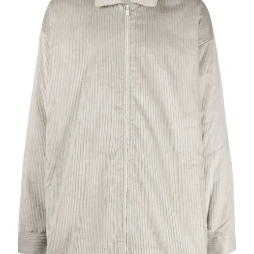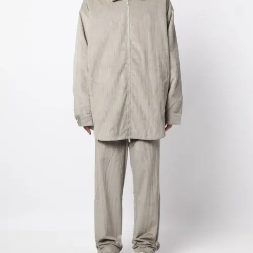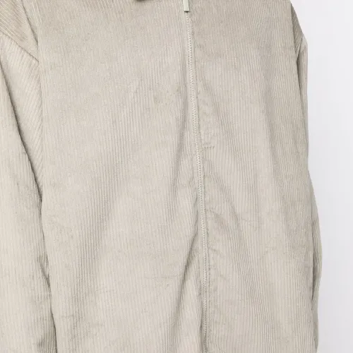 Холодный серый, хлопок, вельветовый материал, классический воротник, застежка на молнии спереди, длинные рукава и закругленный подол.