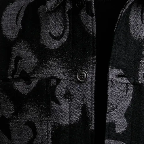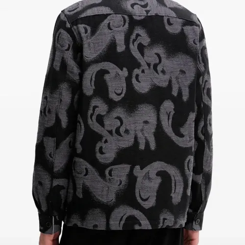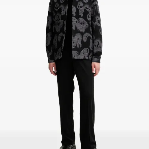 чёрная с узором, застёгивается на пуговицы, нагрудные карманы, классический воротник, длинные рукава