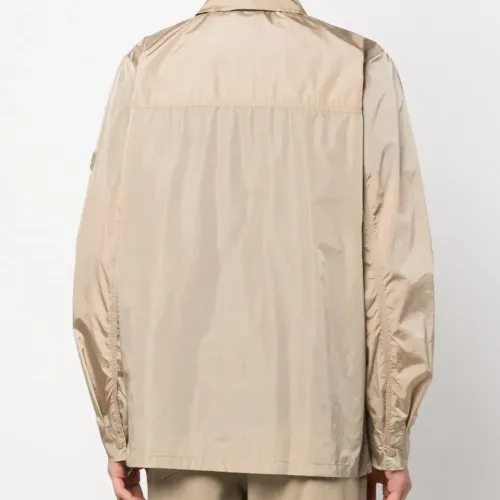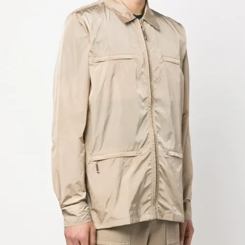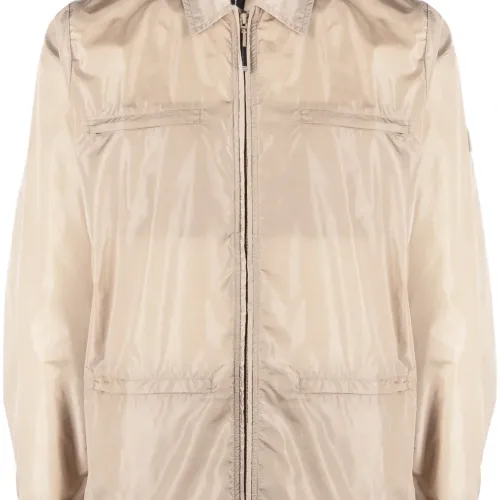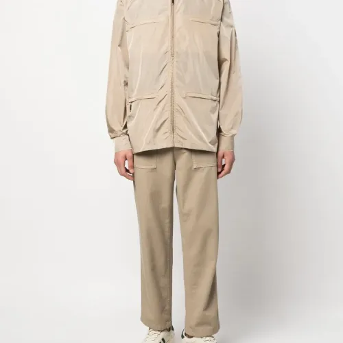 Песочно-бежевый, легкий материал, нашивка с логотипом на рукаве, отложной воротник, застежка на молнии спереди, длинные рукава, манжеты с застежкой на кнопки, два нагрудных кармана с листочкой, два кармана на молнии и прямой подол. Узнать больше о том, какие товары получают отметку «Ответственный выбор», можно из материала «Как мы оцениваем экологичность и этичность».