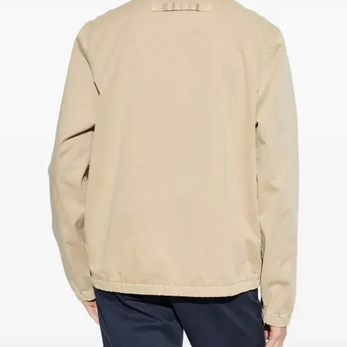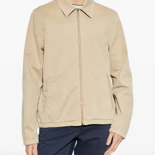 бежевый цвет, застёжка-молния, накладные карманы, воротник с острыми уголками, эластичный низ